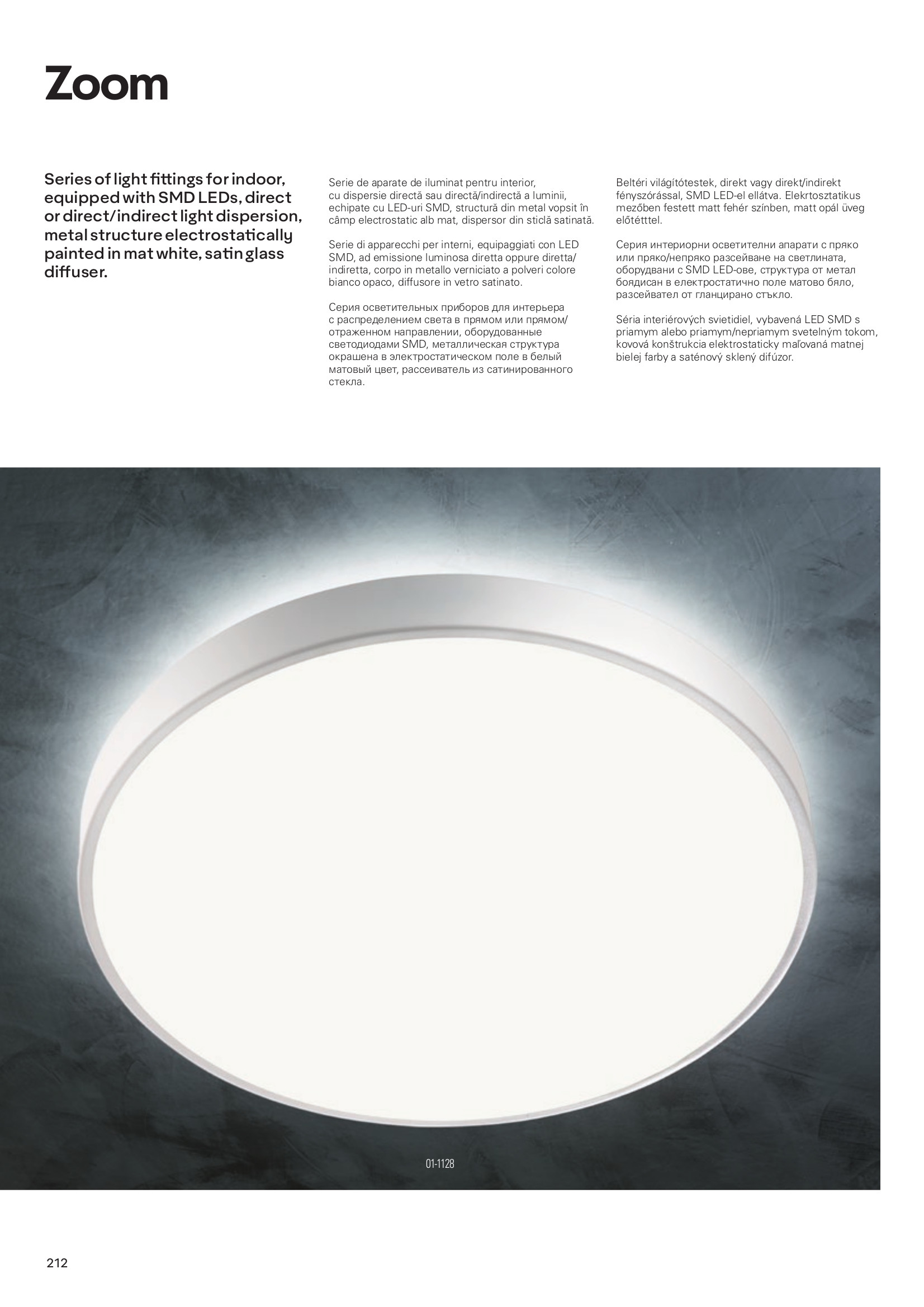 Осветителното тяло ^01-1125 ще осигури комфорт и естетика във всяко помещение, в което се постави. Цялостната визия и дизайн на лампата и вложените в изработката й материали, като метал в матово бял цвят, сатенирано стъкло, ще допринесат за един неповторим стил. Благодарение на дългогодишния опит, качествените материали и строгия контрол на качеството на изработка на дизайнерската линия Redo Indoor на производителя Redo (Румъния), ^01-1125 е на високо европейско ниво.