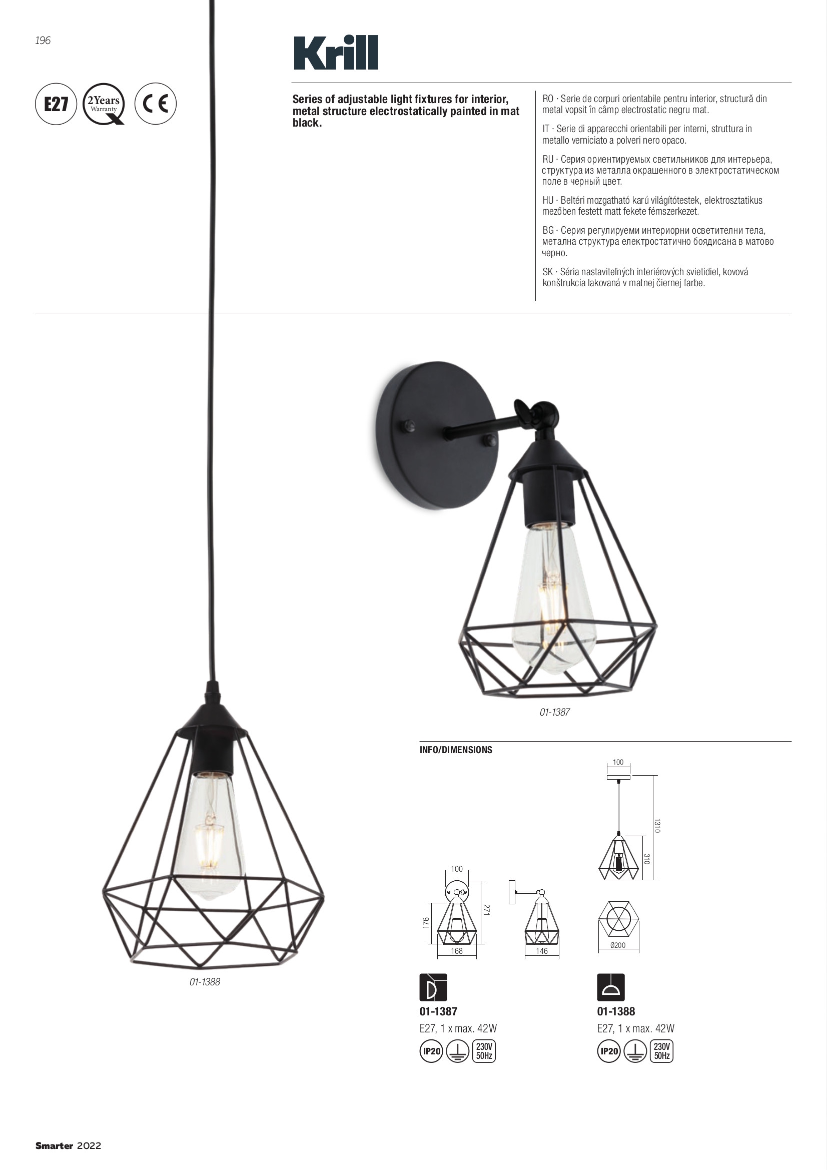 Стилът и естетиката на обстановката ще се обогатят благодарение, както на цялостната визия и дизайн на осветителното тяло, така и на вложените в изработката му, качествени материали, като: метал с електростатично нанесено черно покритие.
