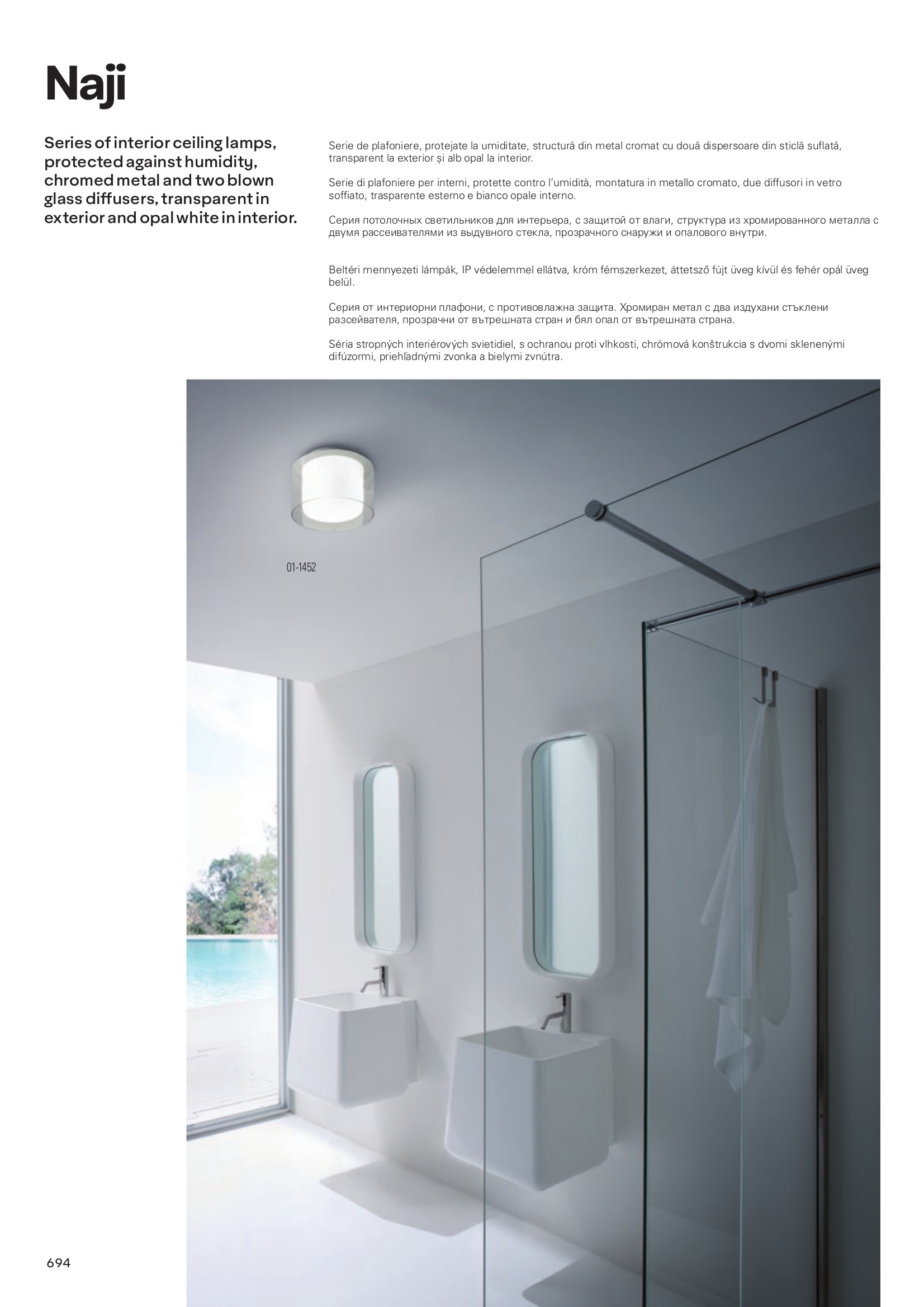 За стила и естетиката на интериора в изключително висока степен допринасят, както цялостната визия и дизайн на осветителното тяло, така и вложените в изработката висококачествени материали, като метал с хромово покритие, стъкло в опалово бял цвят, прозрачно стъкло.
