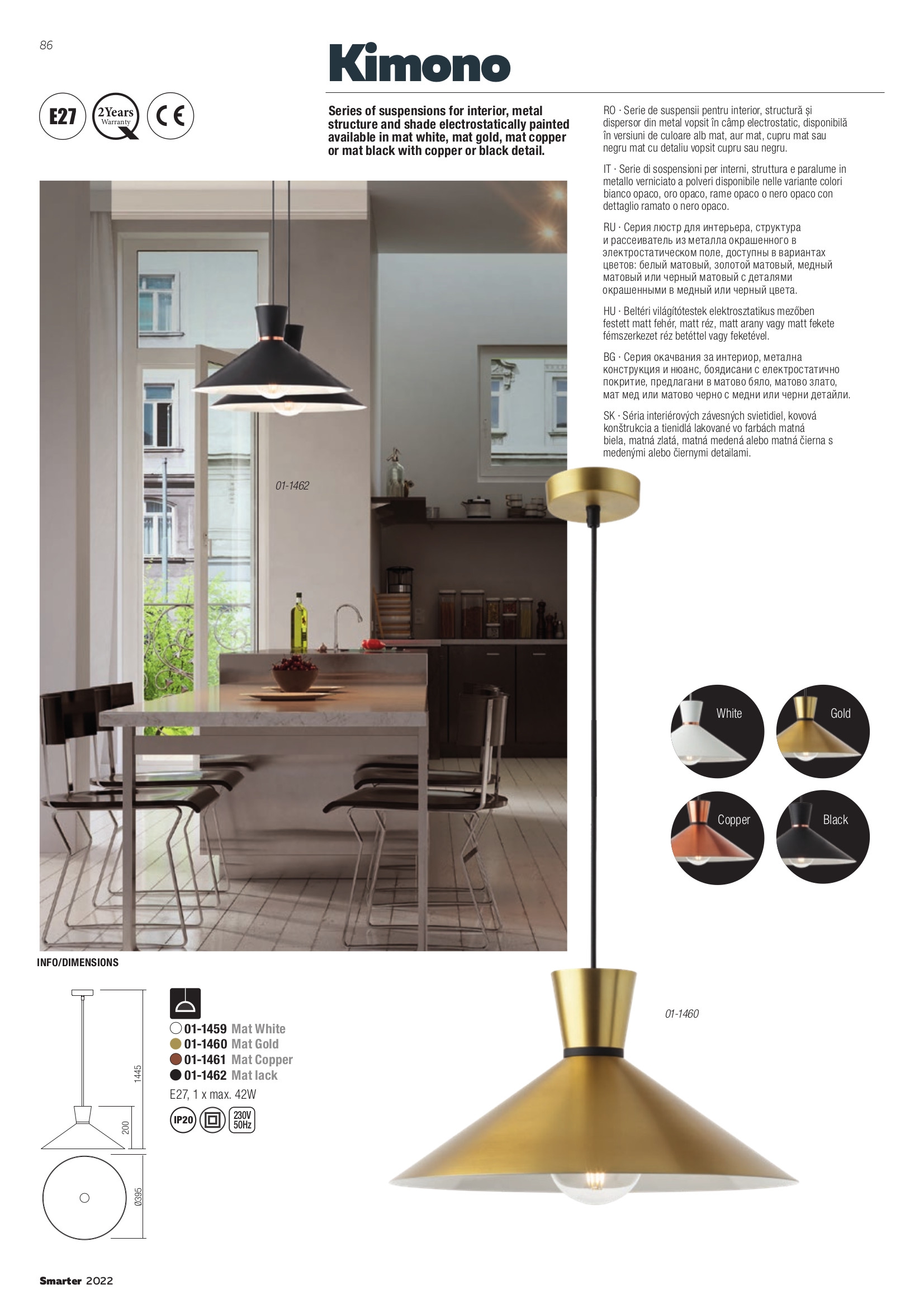 Стилът и естетиката на обстановката ще се обогатят благодарение, както на цялостната визия и дизайн на осветителното тяло, така и на вложените в изработката му, качествени материали, като: метал в цвят матово злато отвън и бяло отвътре, детайл в черен цвят.