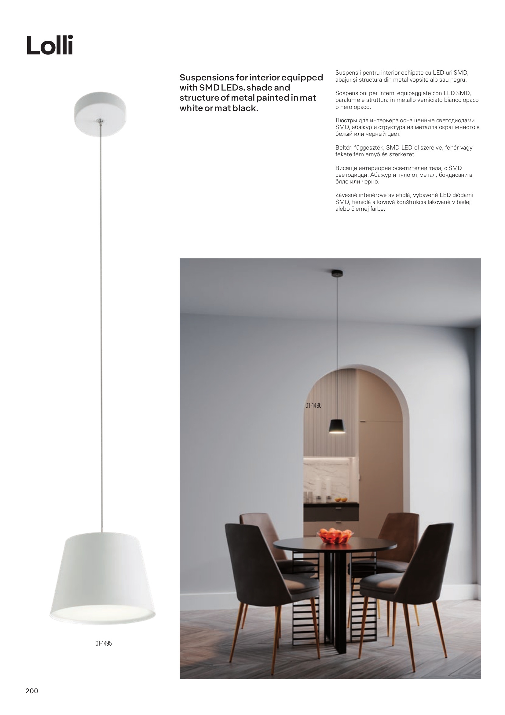 Осветителното тяло ^01-1498 представлява пендел в съвременен, дизайнерски стил. ^01-1498 е от категорията осветителни тела и е подходящо за осветяване на различни помещения и пространства като: всекидневна / хол, спалня, кухня, трапезария, антре, офис.