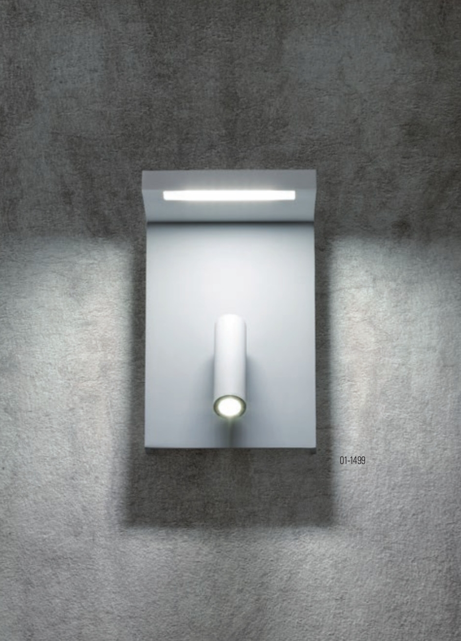 Осветителното тяло 01-1499 представлява аплик, спот лампа в съвременен стил. 01-1499 е от категорията осветителни тела и е подходящо за осветяване на различни помещения и пространства като: спалня.