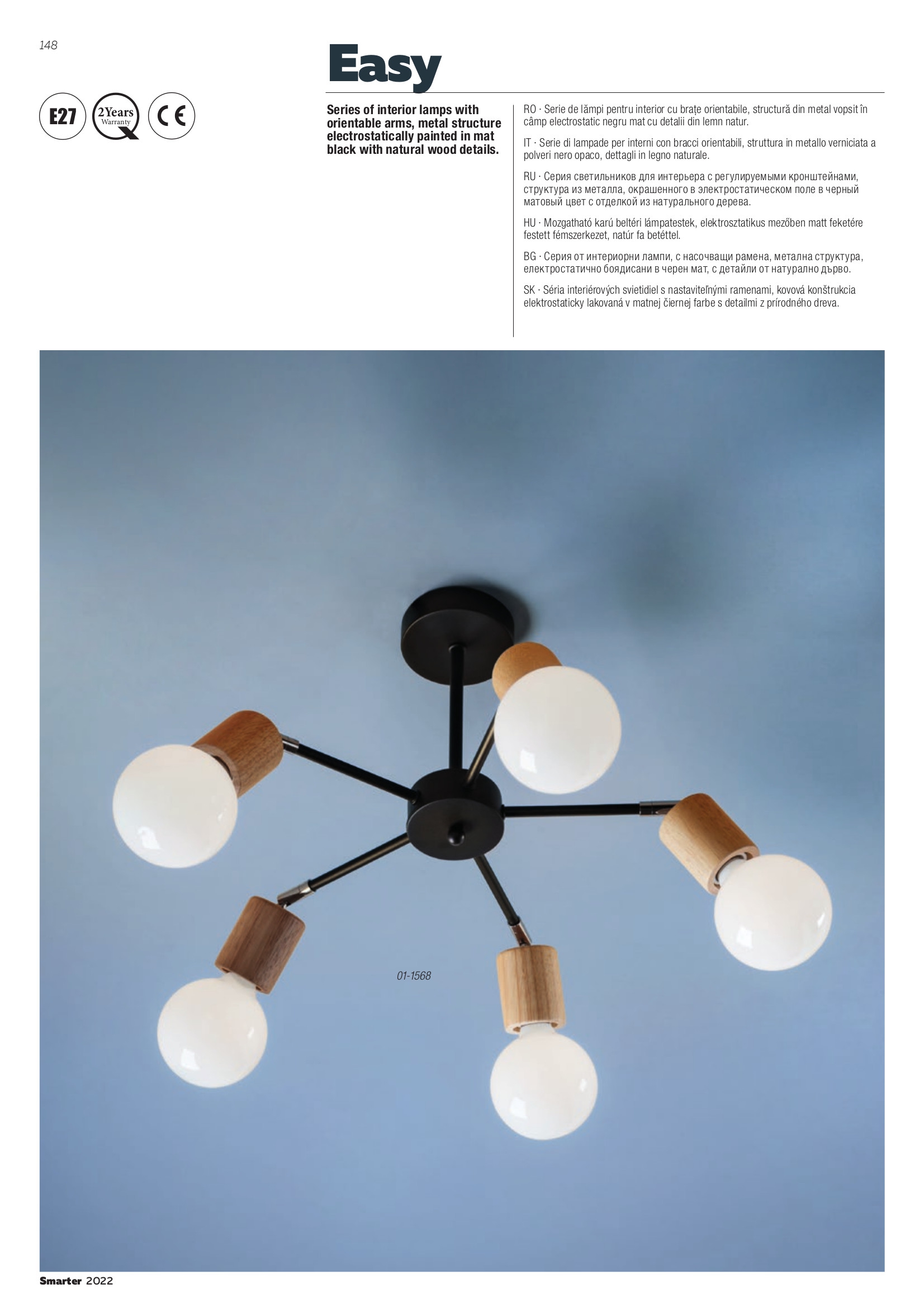 Осветителното тяло 01-1567 ще осигури комфорт и естетика във всяко помещение, в което се постави. Цялостната визия и дизайн на лампата и вложените в изработката й материали, като метал с електростатично нанесено покритие в цвят черен мат, детайл от натурално дърво, ще допринесат за един неповторим стил. Благодарение на дългогодишния опит, качествените материали и строгия контрол на качеството на изработка на дизайнерската линия Redo Smarter на производителя Redo (Румъния), 01-1567 е на високо европейско ниво.