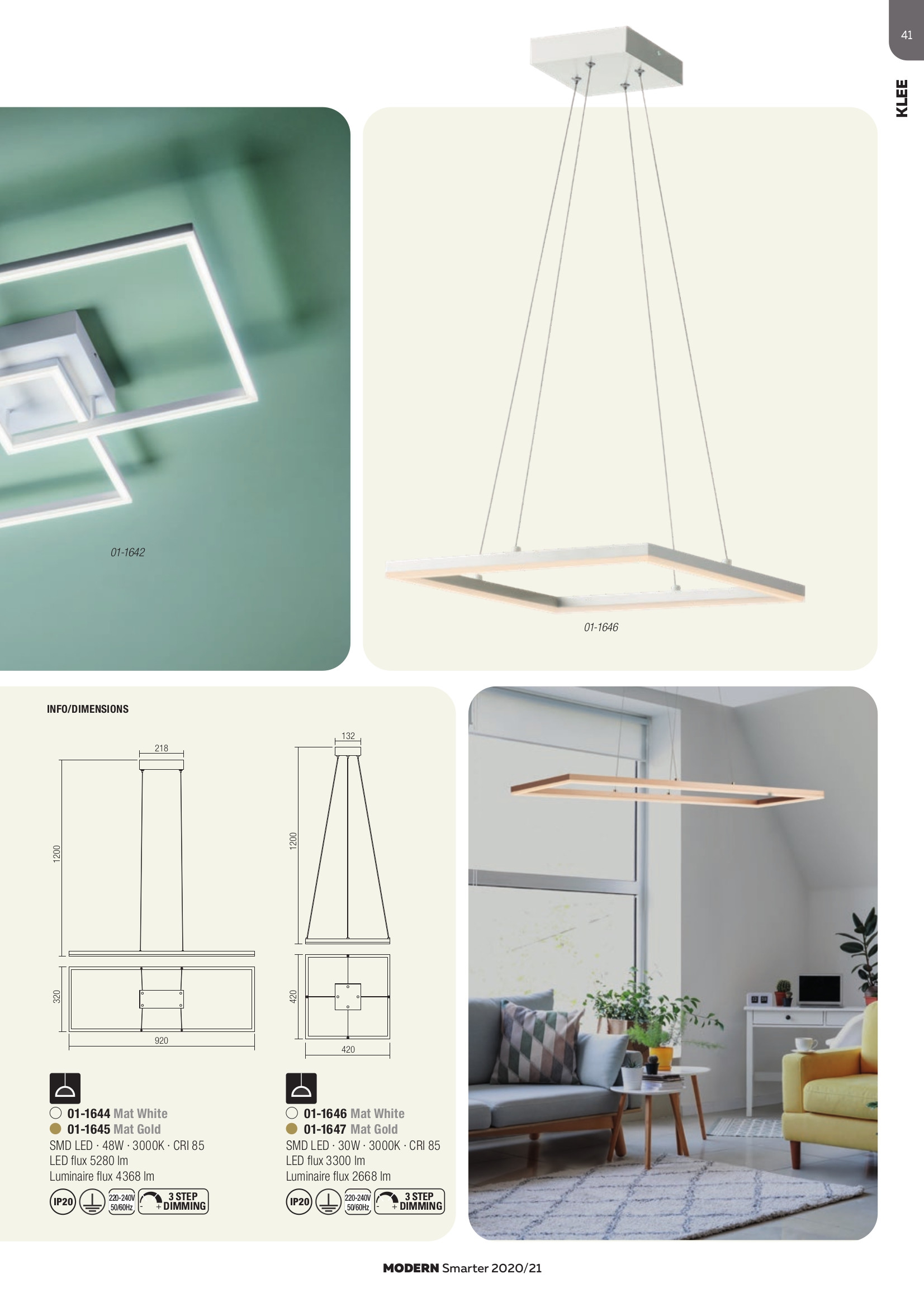 Осветителното тяло 01-1645 ще осигури комфорт и естетика във всяко помещение, в което се постави. Цялостната визия и дизайн на лампата и вложените в изработката й материали, като метал в цвят златен мат, дифузер от полимер в сатенено бяло, ще допринесат за един неповторим стил. Благодарение на дългогодишния опит, качествените материали и строгия контрол на качеството на изработка на дизайнерската линия Redo Smarter на производителя Redo (Румъния), 01-1645 е на високо европейско ниво.