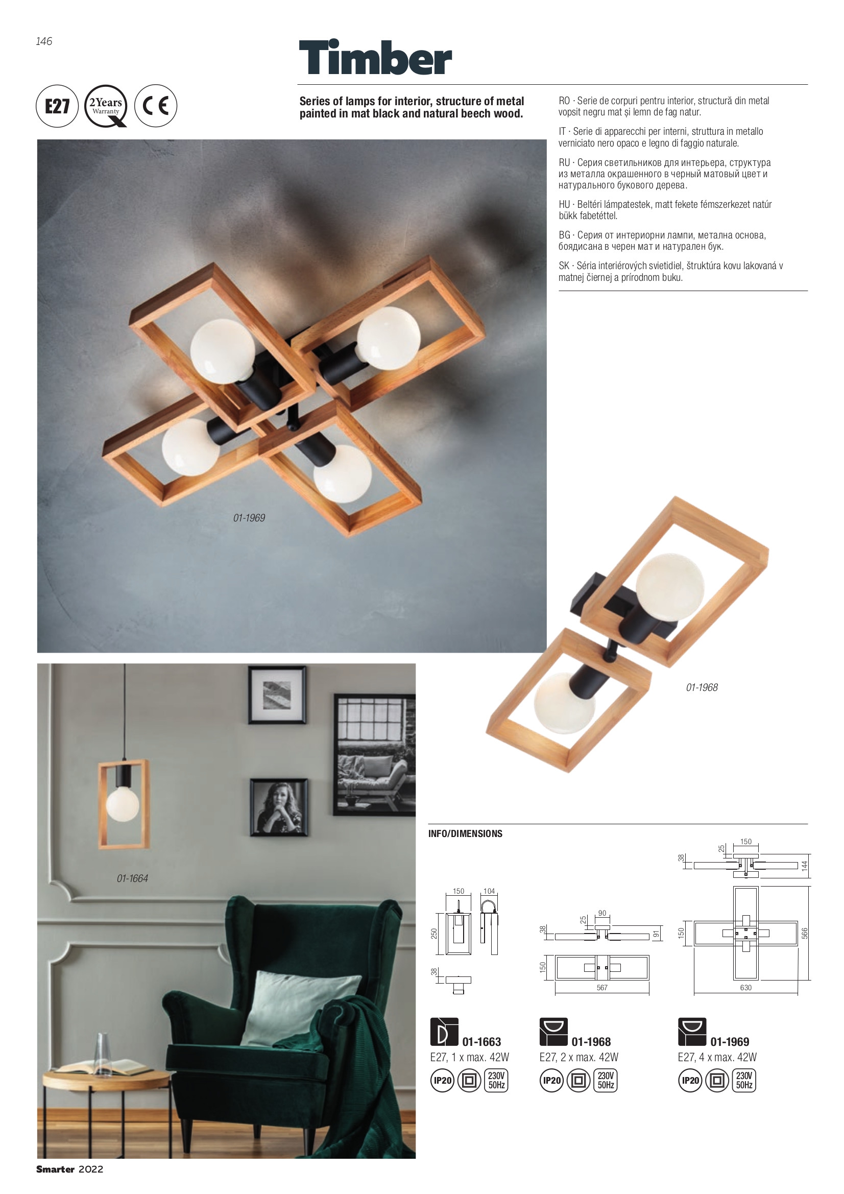 Осветителното тяло 01-1664 ще осигури комфорт и естетика във всяко помещение, в което се постави. Цялостната визия и дизайн на лампата и вложените в изработката й материали, като метал в цвят черен мат, бук в естествен цвят, ще допринесат за един неповторим стил. Благодарение на дългогодишния опит, качествените материали и строгия контрол на качеството на изработка на дизайнерската линия Redo Smarter на производителя Redo (Румъния), 01-1664 е на високо европейско ниво.