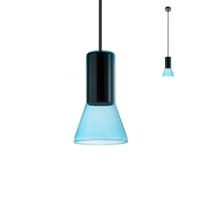 Стилът и естетиката на обстановката ще се обогатят благодарение, както на цялостната визия и дизайн на осветителното тяло, така и на вложените в изработката му, качествени материали, като: алуминий в цвят черен мат, дифузер от духано стъкло в синьо.