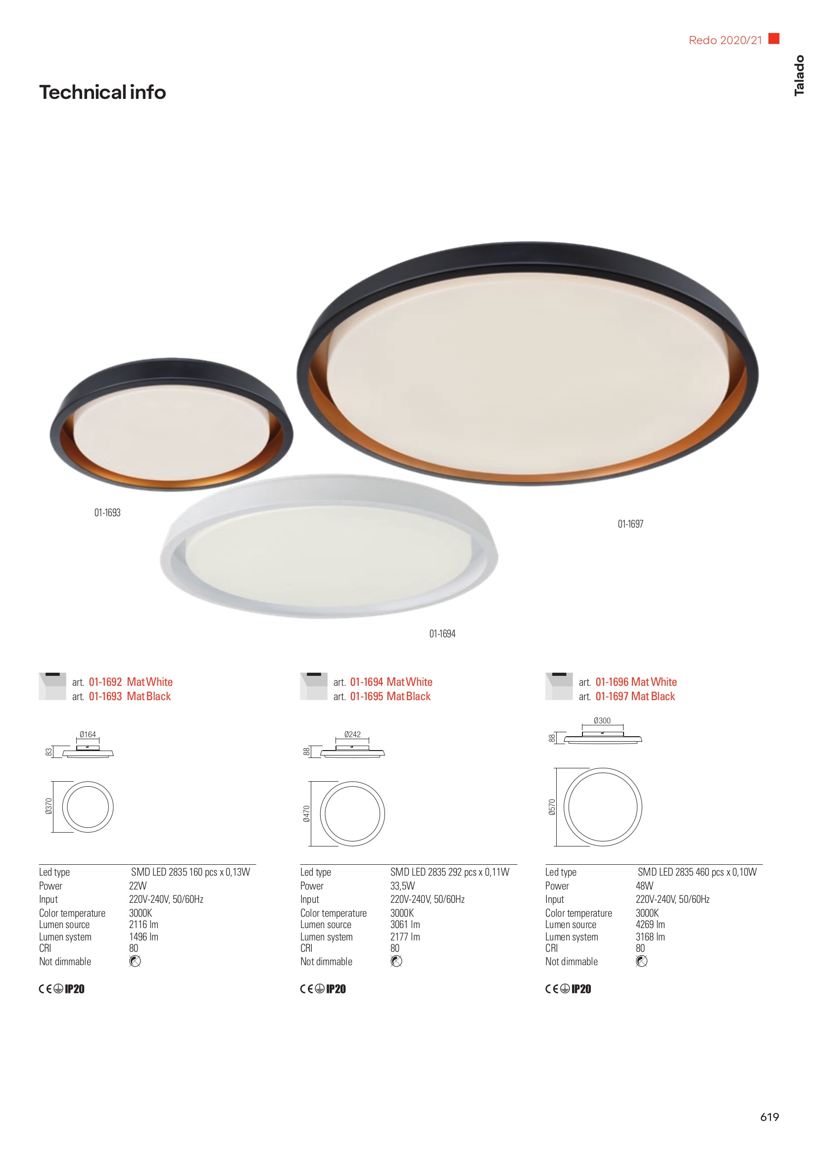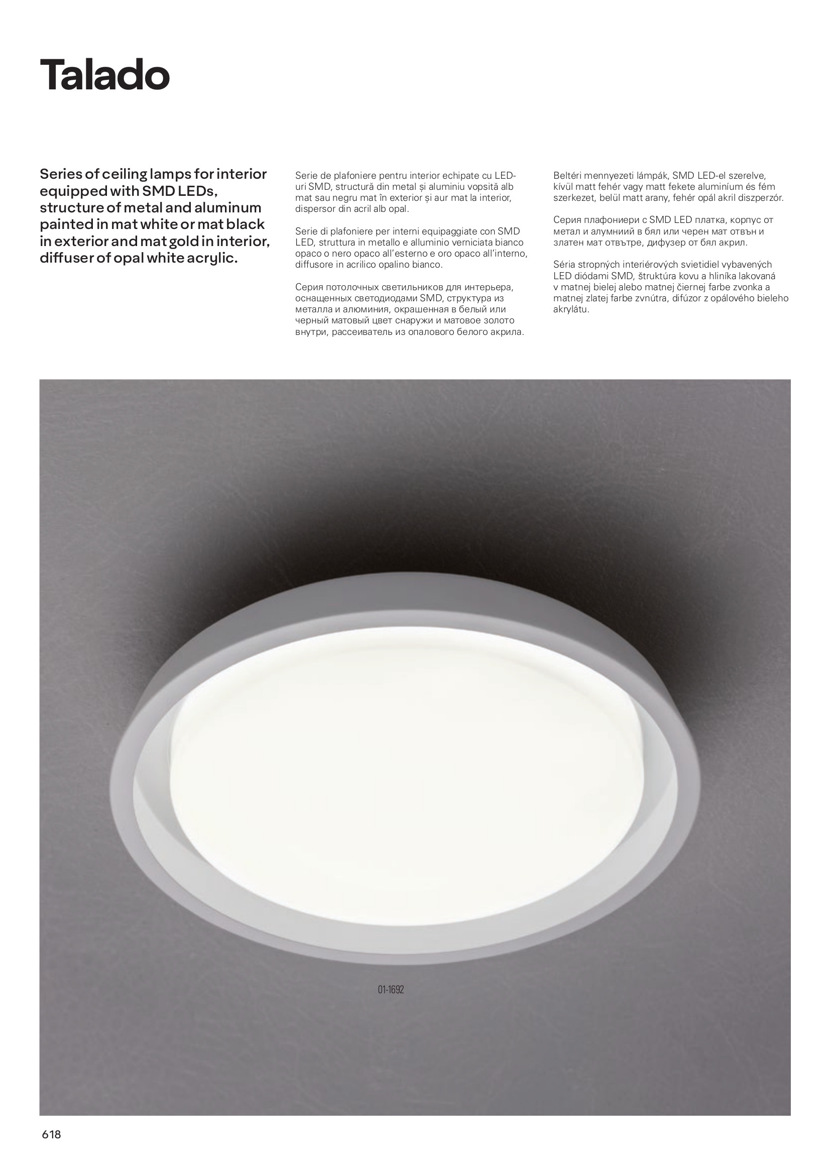 Осветителното тяло 01-1694 ще осигури комфорт и естетика във всяко помещение, в което се постави. Цялостната визия и дизайн на лампата и вложените в изработката й материали, като алуминий и метал в цвят бял мат, дифузер от бял полимер, ще допринесат за един неповторим стил. Благодарение на дългогодишния опит, качествените материали и строгия контрол на качеството на изработка на дизайнерската линия Redo Indoor на производителя Redo (Румъния), 01-1694 е на високо европейско ниво.