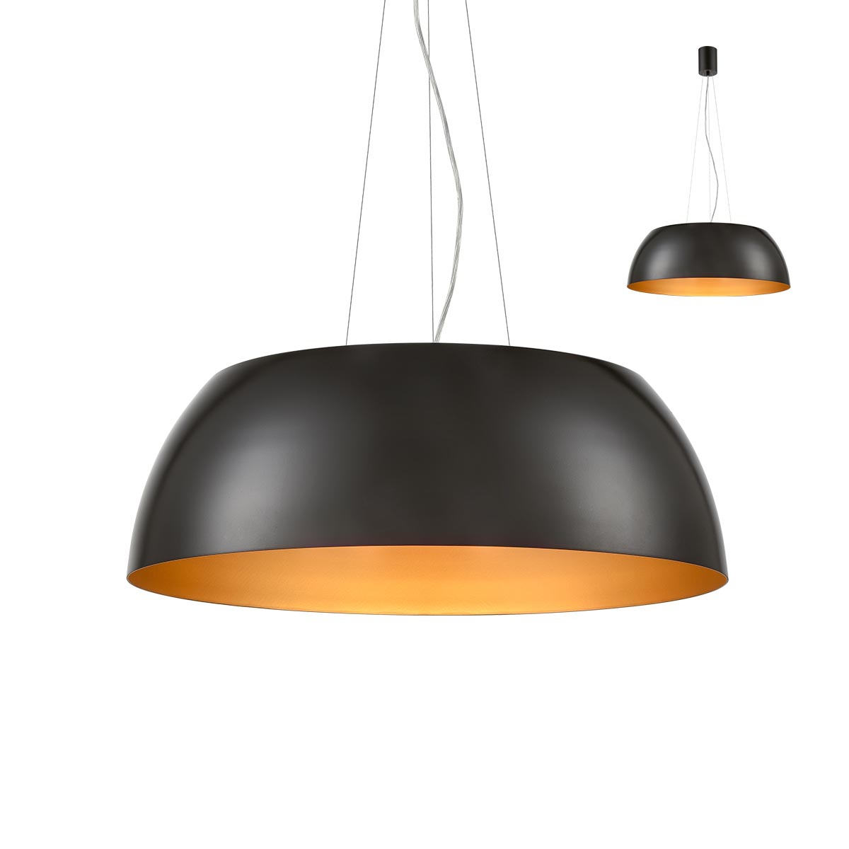алуминий и метал в матово черен цвят отвън и цвят злато отвътре, дифузер в опалово бяло