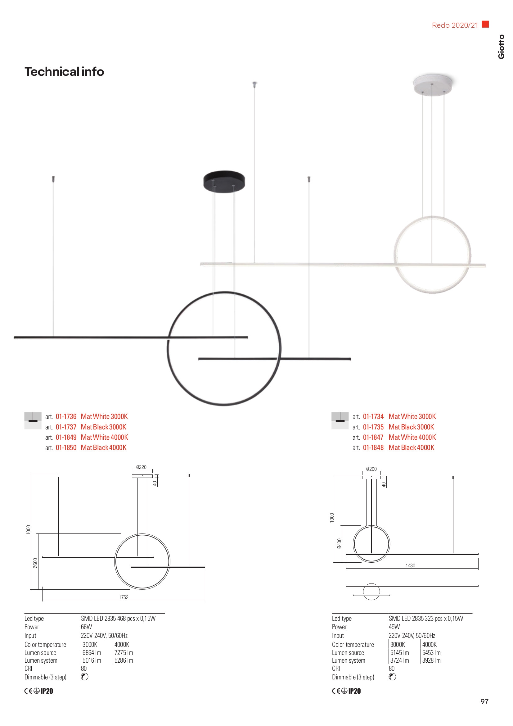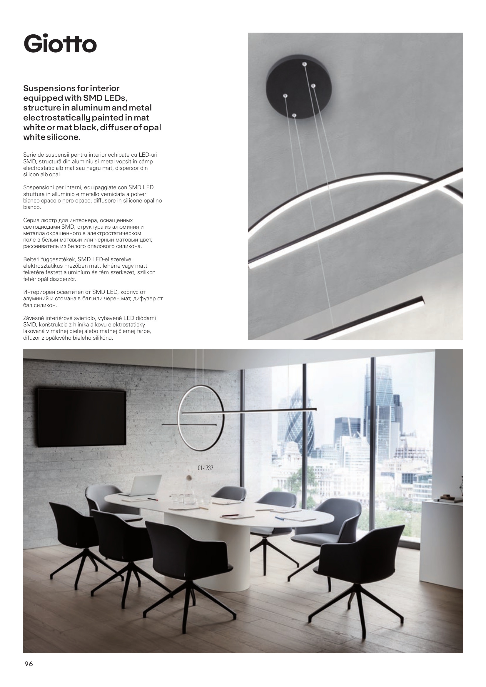 Лед полилей 01-1735 GIOTTO SU LED 49W 3000K mat black ще осигури комфорт и естетика във всяко помещение, в което се постави. Цялостната визия и дизайн на led лампата и вложените в изработката й материали, като алуминий в матово черен цвят, разсейвател от бял опалов силикон, ще допринесат за един неповторим стил. Благодарение на дългогодишния опит в производството на лед осветление, качествените материали и строгия контрол на качеството на изработка на дизайнерската линия Redo Indoor на производителя Redo (Румъния), 01-1735 GIOTTO SU LED 49W 3000K mat black е на високо европейско ниво.