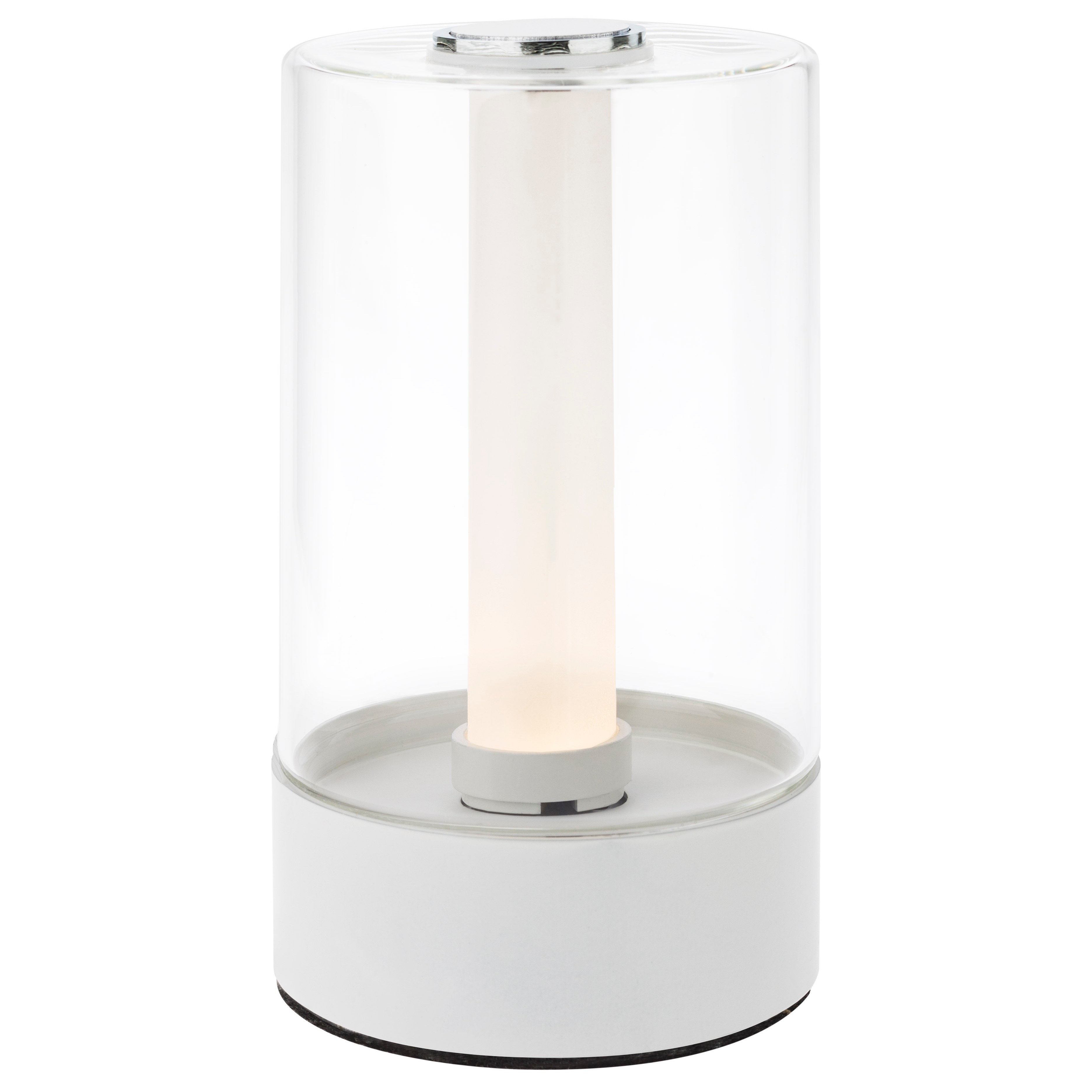 метал в матово бял цвят, двоен дифузер - от прозрачен акрил и от акрил с ефект заскрежено бяло, USB порт за зареждане, touch тристъпков димер