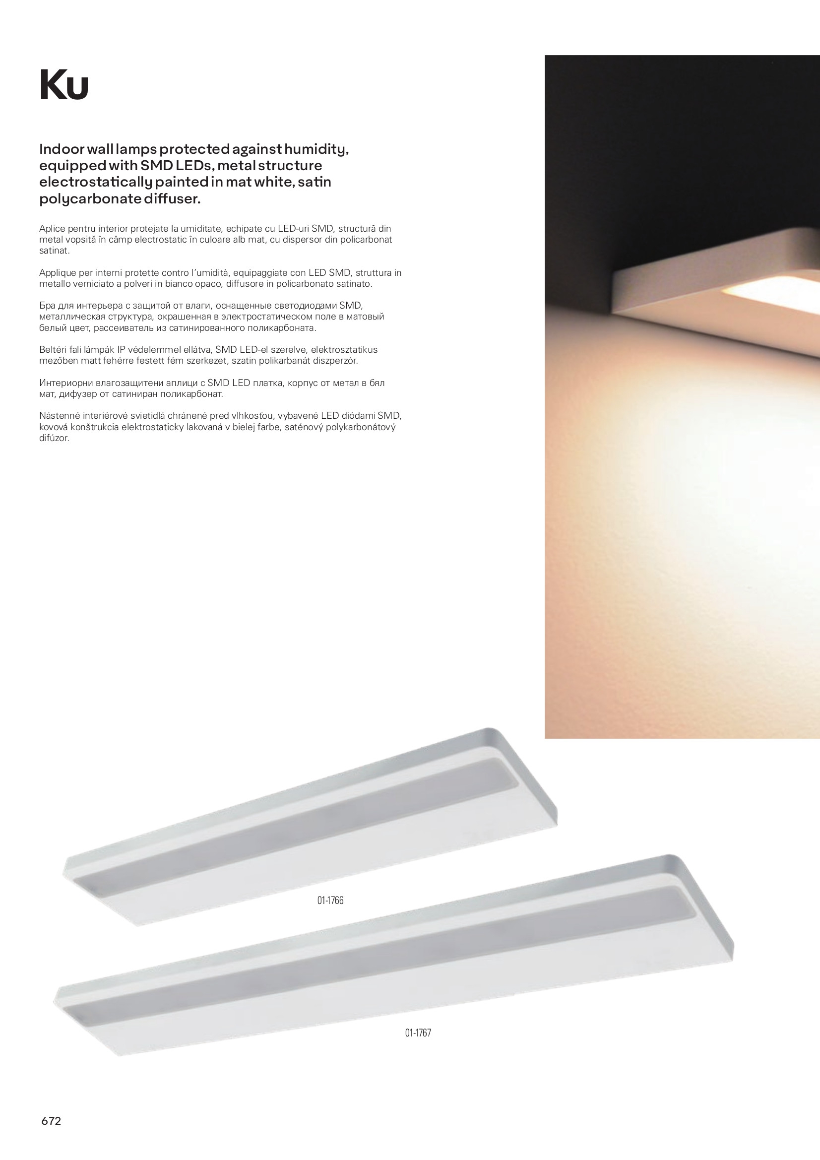 Осветителното тяло ^01-1766 ще осигури комфорт и естетика във всяко помещение, в което се постави. Цялостната визия и дизайн на лампата и вложените в изработката й материали, като метал в цвят бял мат, дифузер от сатениран полимер, ще допринесат за един неповторим стил. Благодарение на дългогодишния опит, качествените материали и строгия контрол на качеството на изработка на дизайнерската линия Redo Indoor на производителя Redo (Румъния), ^01-1766 е на високо европейско ниво.