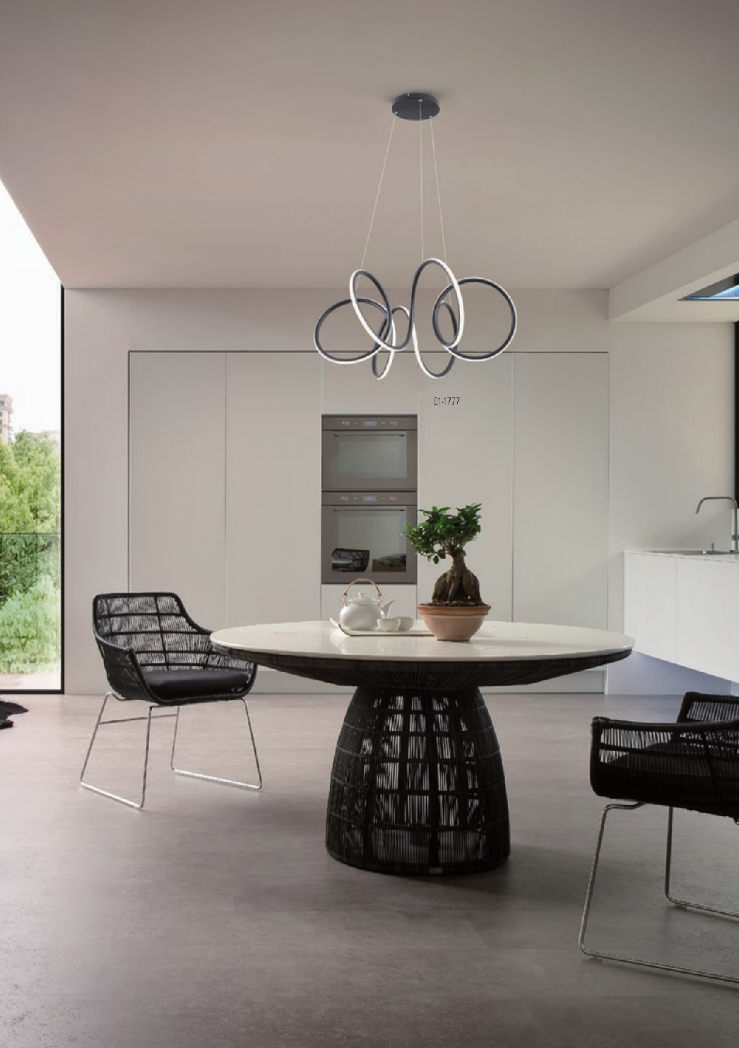 Осветителното тяло 01-1777 представлява полилей в съвременен, дизайнерски стил. 01-1777 е от категорията осветителни тела и е подходящо за осветяване на различни помещения и пространства като: всекидневна / хол, спалня, кухня, трапезария, офис.