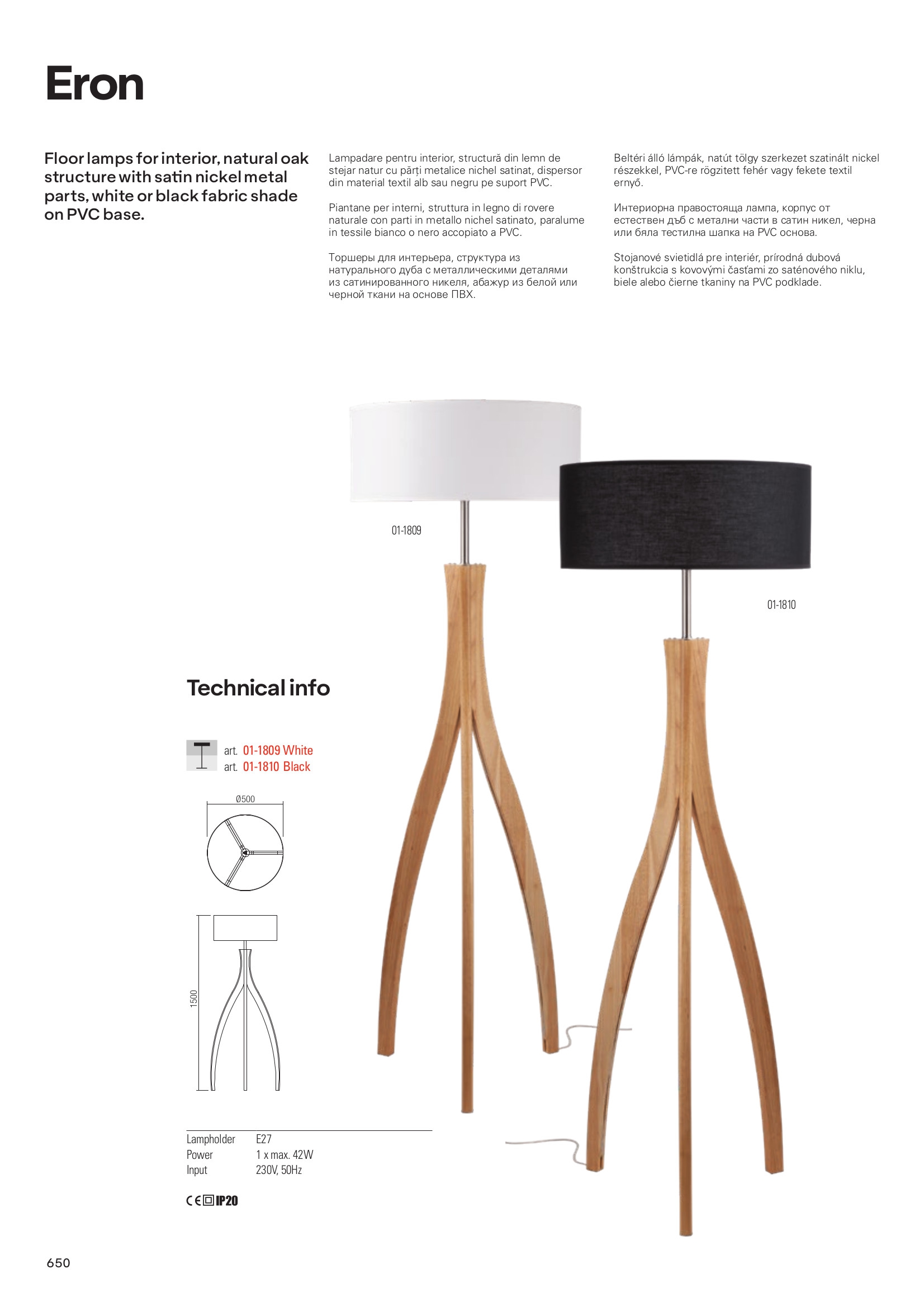 Осветителното тяло 01-1809 представлява лампион / правостояща лампа в съвременен стил. 01-1809 е от категорията осветителни тела и е подходящо за осветяване на различни помещения и пространства като: всекидневна / хол, спалня, трапезария, офис.