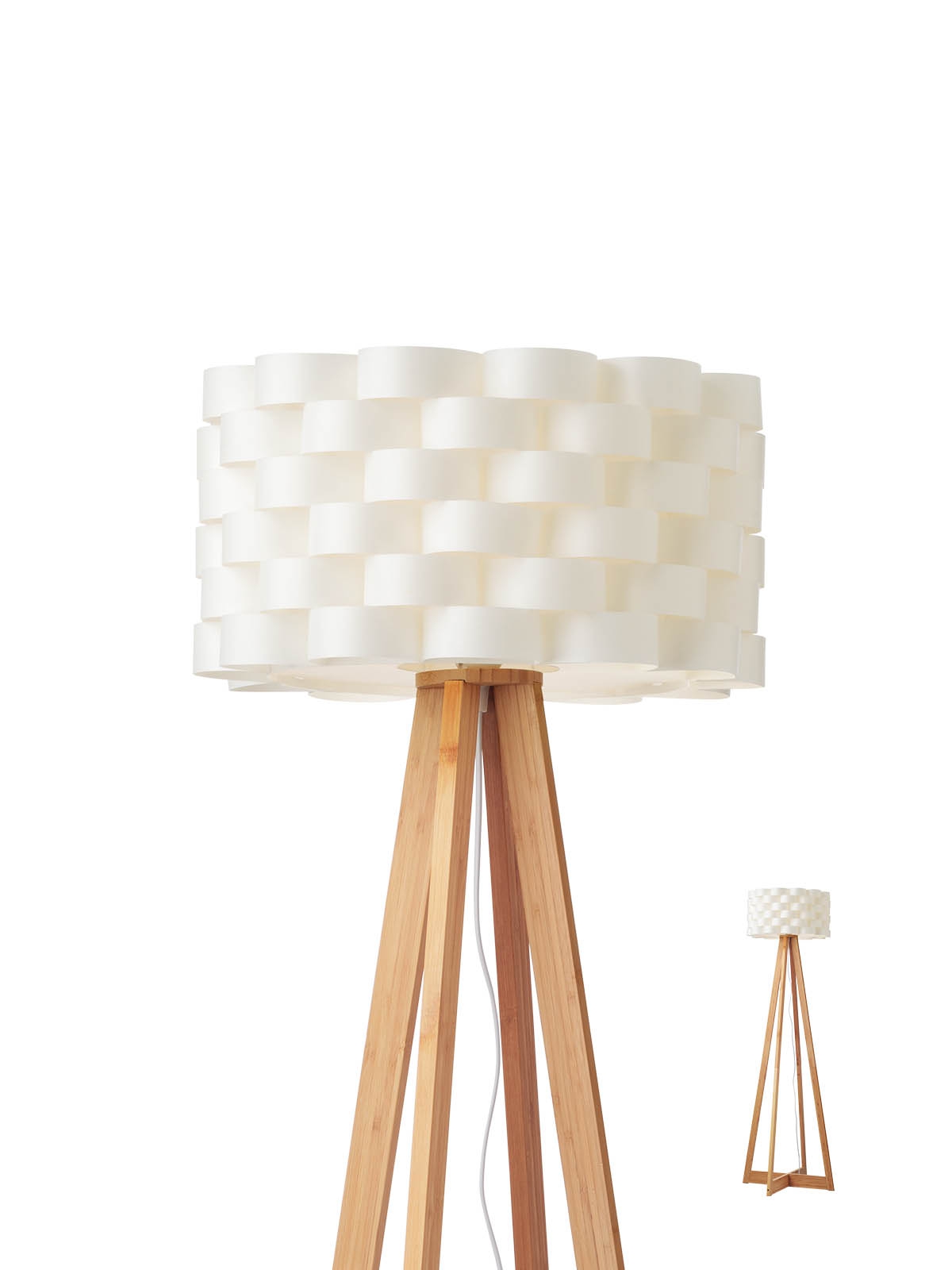 бамбук в естествен цвят, абажур от полимер в бял цвят