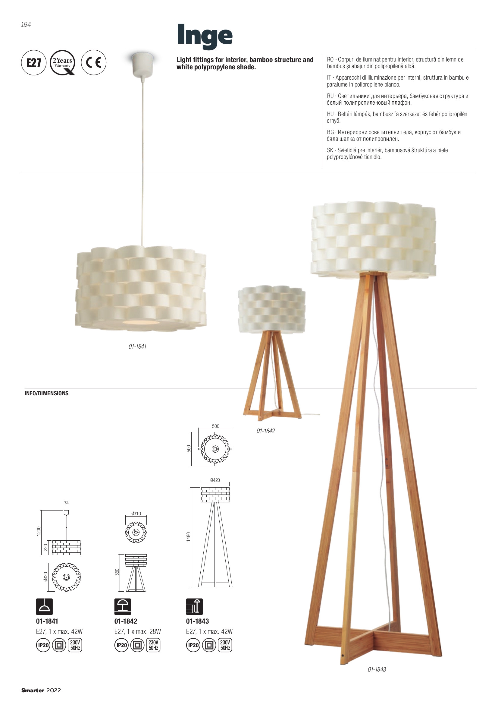 Осветителното тяло 01-1843 ще осигури комфорт и естетика във всяко помещение, в което се постави. Цялостната визия и дизайн на лампата и вложените в изработката й материали, като бамбук в естествен цвят, абажур от полимер в бял цвят, ще допринесат за един неповторим стил. Благодарение на дългогодишния опит, качествените материали и строгия контрол на качеството на изработка на дизайнерската линия Redo Smarter на производителя Redo (Румъния), 01-1843 е на високо европейско ниво.
