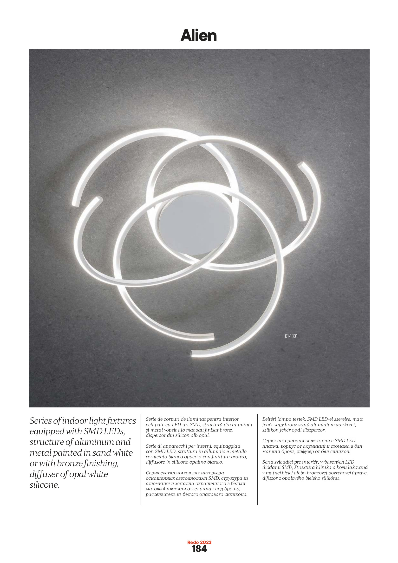 Осветителното тяло 01-1862 ще осигури комфорт и естетика във всяко помещение, в което се постави. Цялостната визия и дизайн на лампата и вложените в изработката й материали, като алуминий с бронзово покритие, дифузер от опалово бял силикон, ще допринесат за един неповторим стил. Благодарение на дългогодишния опит, качествените материали и строгия контрол на качеството на изработка на дизайнерската линия Redo Indoor на производителя Redo (Румъния), 01-1862 е на високо европейско ниво.