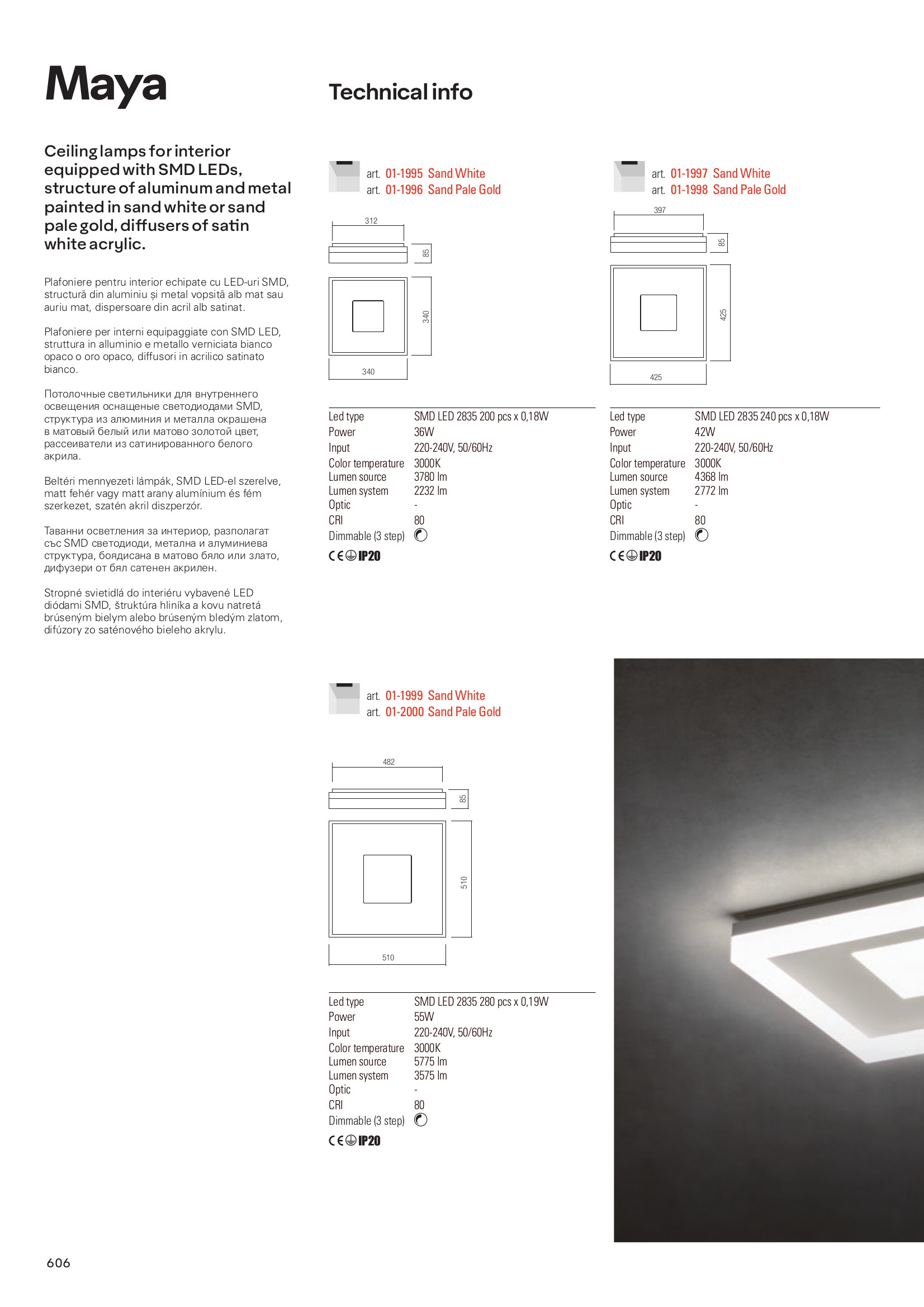 Осветителното тяло 01-2004 представлява лед плафон в съвременен стил. 01-2004 е от категорията и е подходящо за осветяване на различни помещения и пространства като: всекидневна / хол, спалня, кухня, трапезария, офис.