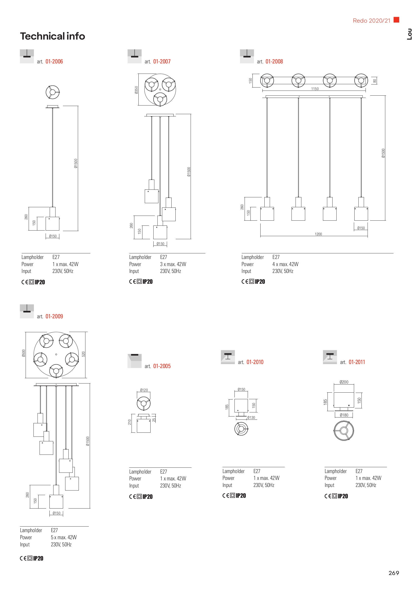 Ел. мощност 5 х 42 W Размери Ф50см x 26см x 150см Производител Redo, Румъния