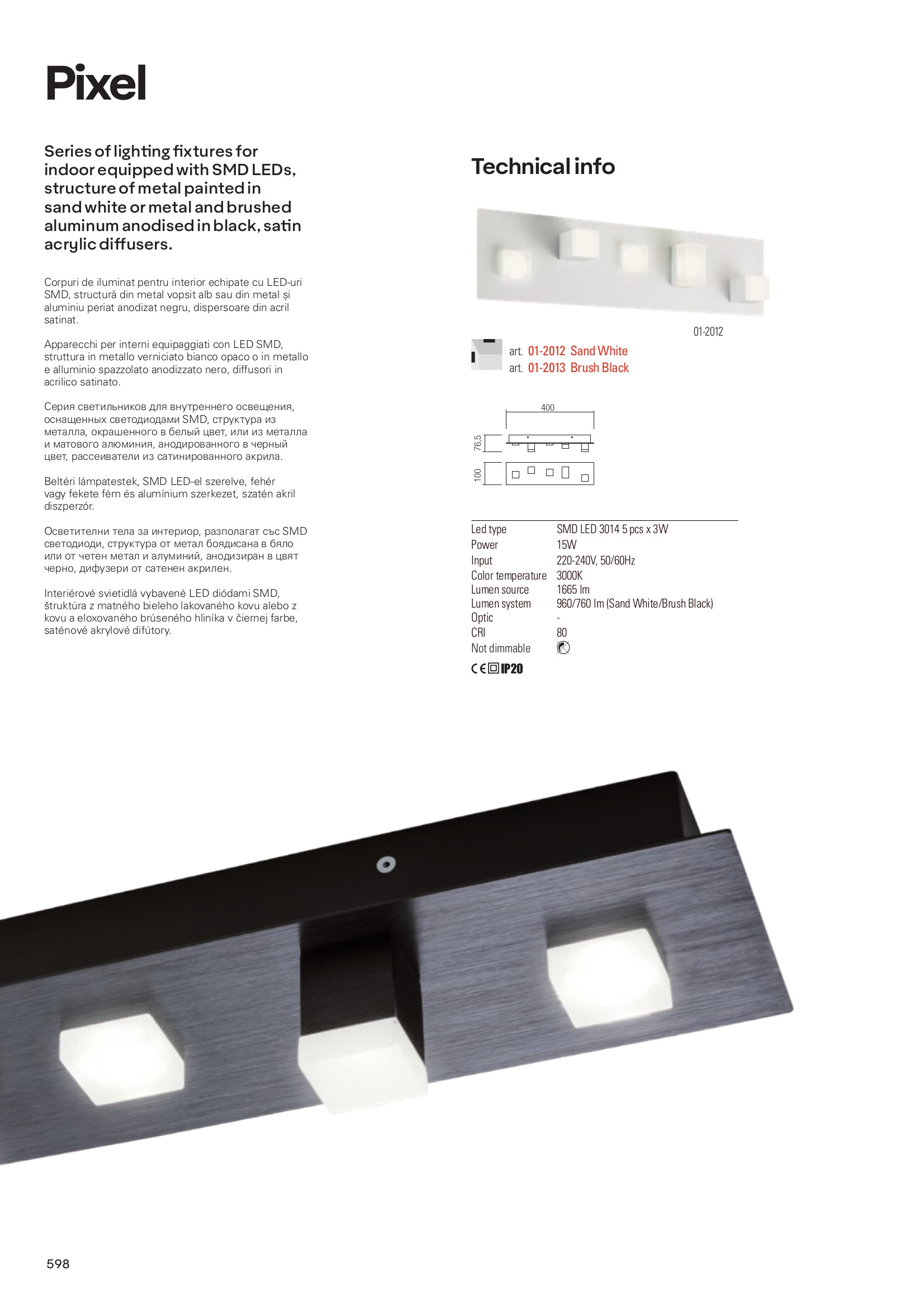 Осветителното тяло 01-2016 ще осигури комфорт и естетика във всяко помещение, в което се постави. Цялостната визия и дизайн на лампата и вложените в изработката й материали, като метал в в цвят бял мат, дифузер в цвят бял сатен, ще допринесат за един неповторим стил. Благодарение на дългогодишния опит, качествените материали и строгия контрол на качеството на изработка на дизайнерската линия Redo Indoor на производителя Redo (Румъния), 01-2016 е на високо европейско ниво.