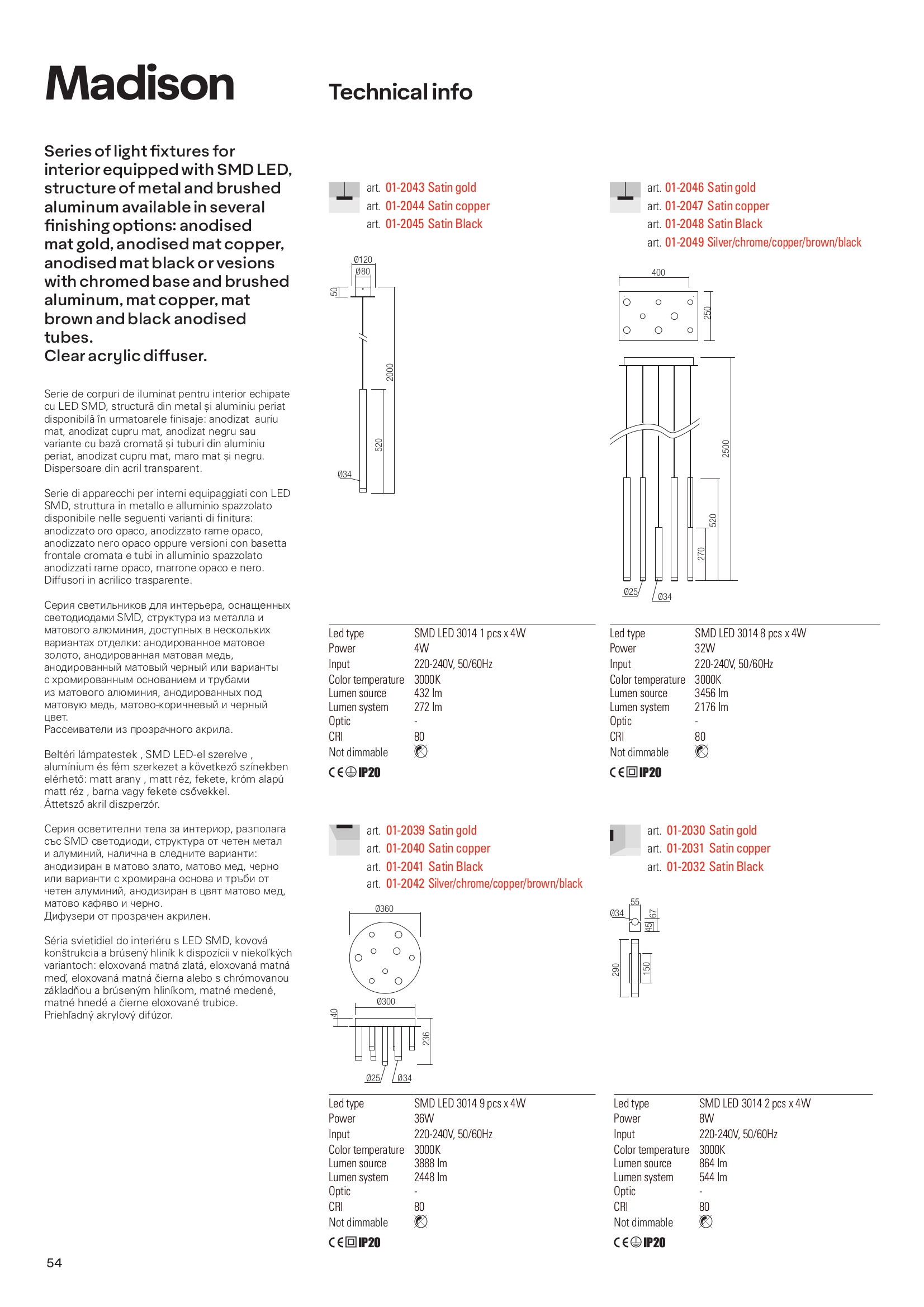 Ел. мощност 16 х 4 W Размери Ф55см x 52см x 300см Производител Redo, Румъния