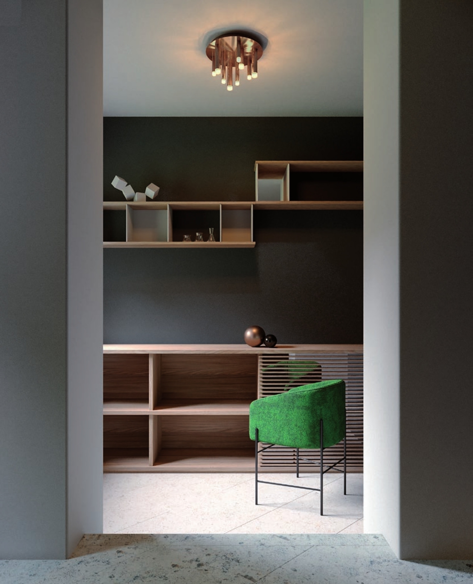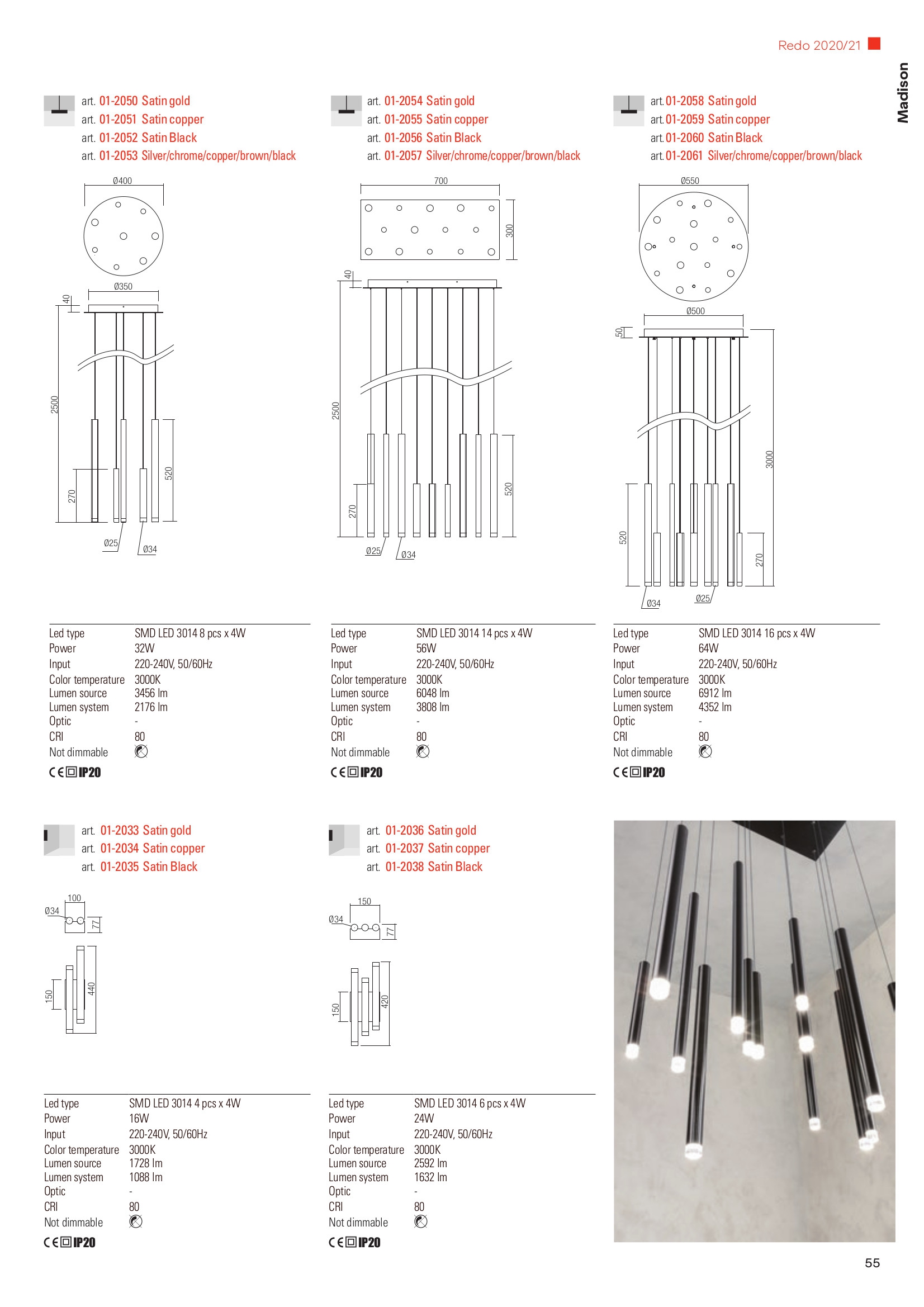 Осветителното тяло 01-2040 ще осигури комфорт и естетика във всяко помещение, в което се постави. Цялостната визия и дизайн на лампата и вложените в изработката й материали, като цилиндрични тела от алуминий в цвят сатенирана мед, основа от метал в цвят сатенирана мед, ще допринесат за един неповторим стил. Благодарение на дългогодишния опит, качествените материали и строгия контрол на качеството на изработка на дизайнерската линия Redo Indoor на производителя Redo (Румъния), 01-2040 е на високо европейско ниво.