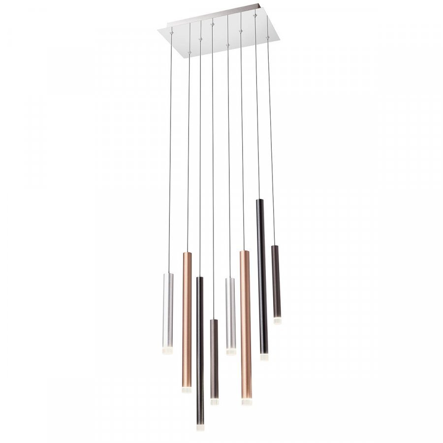 цилиндрични тела от алуминий в цвят сатенирано сребро, мед, кафяво и черно , основа от хромиран метал