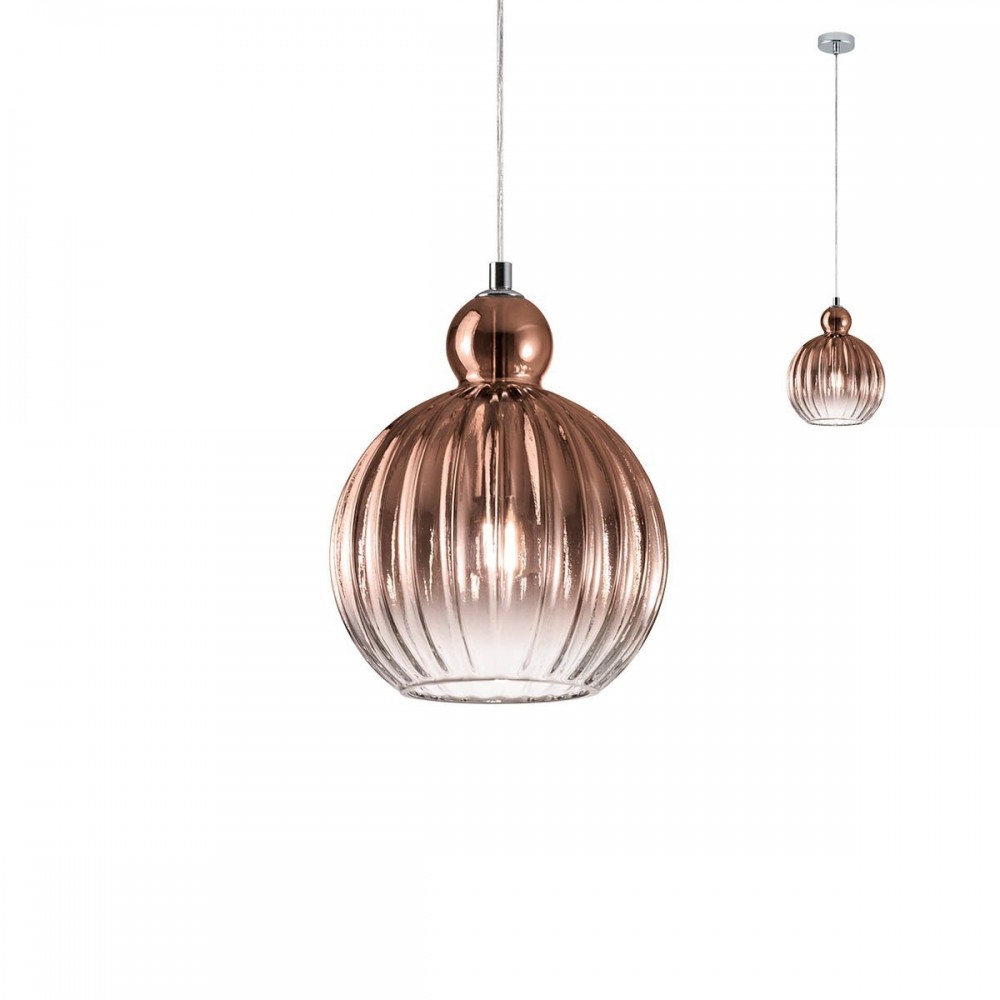 хромиран метал, дифузер от издухано стъкло в цвят мед