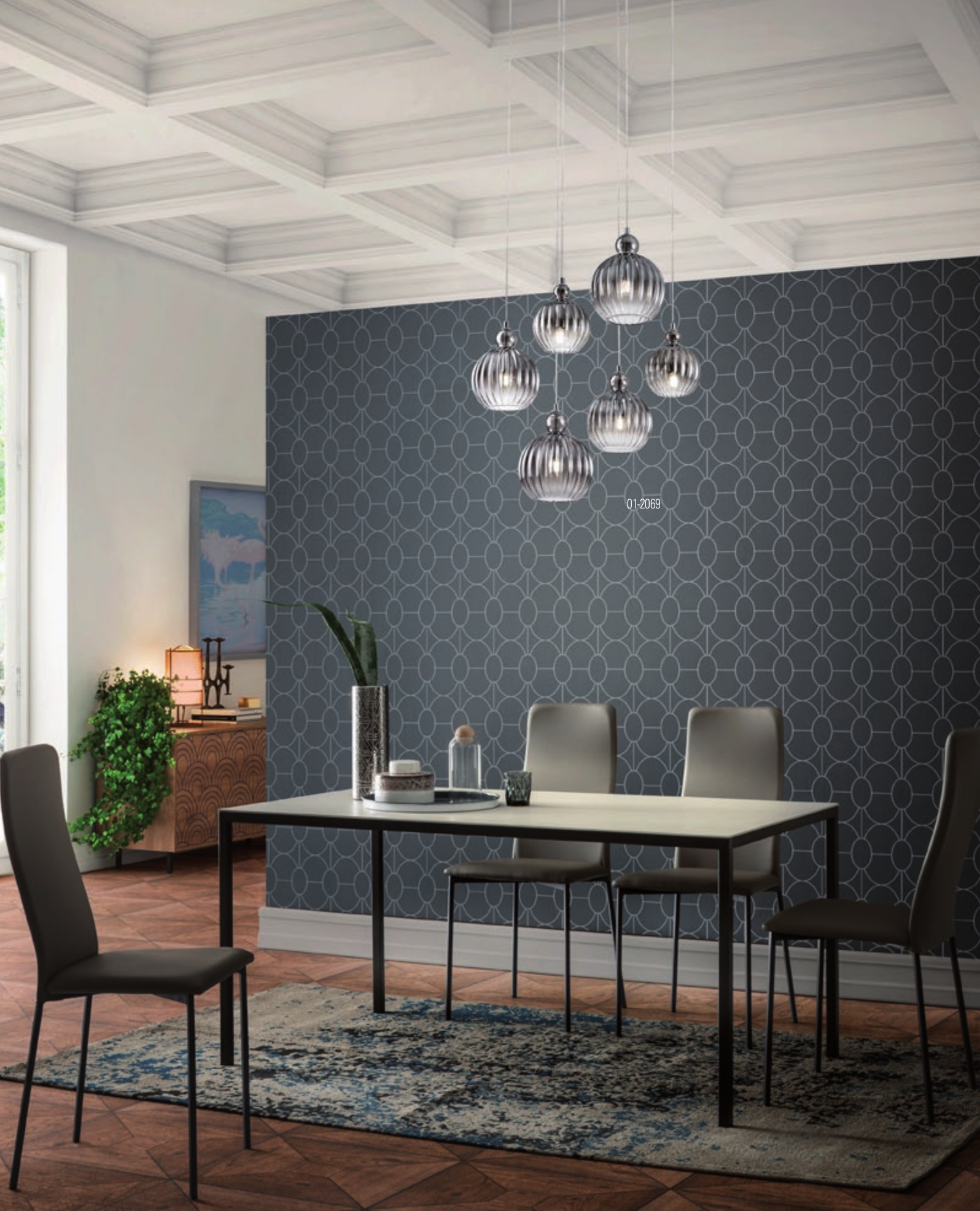 Осветителното тяло 01-2069 ще осигури комфорт и естетика във всяко помещение, в което се постави. Цялостната визия и дизайн на лампата и вложените в изработката й материали, като хромиран метал, дифузери от издухано стъкло в цвят опушено сиво, ще допринесат за един неповторим стил. Благодарение на дългогодишния опит, качествените материали и строгия контрол на качеството на изработка на дизайнерската линия Redo Indoor на производителя Redo (Румъния), 01-2069 е на високо европейско ниво.