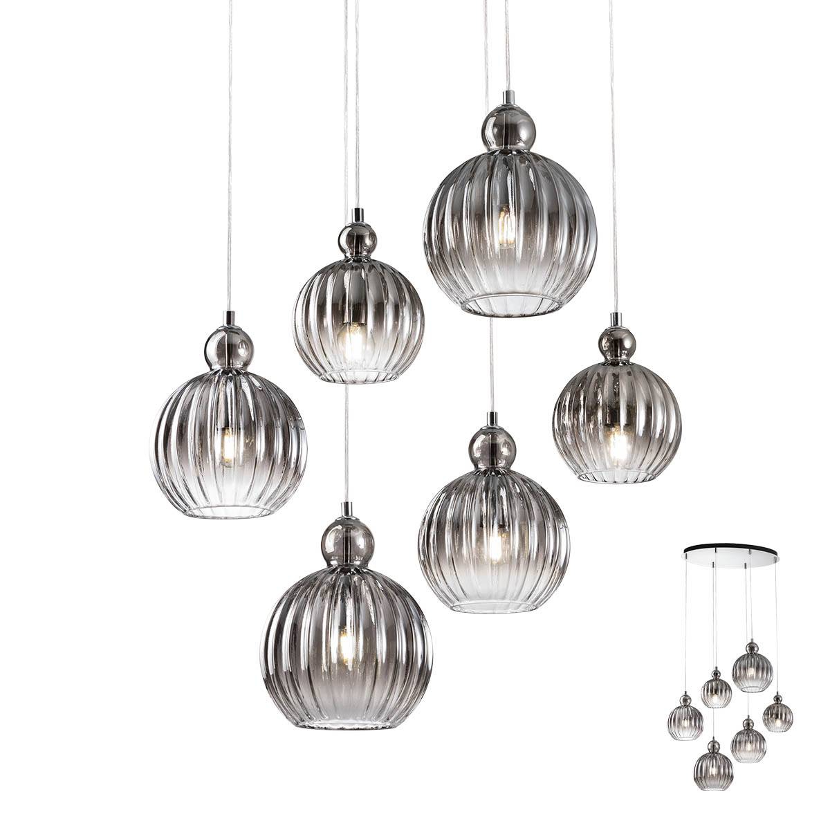 хромиран метал, дифузери от издухано стъкло в цвят опушено сиво