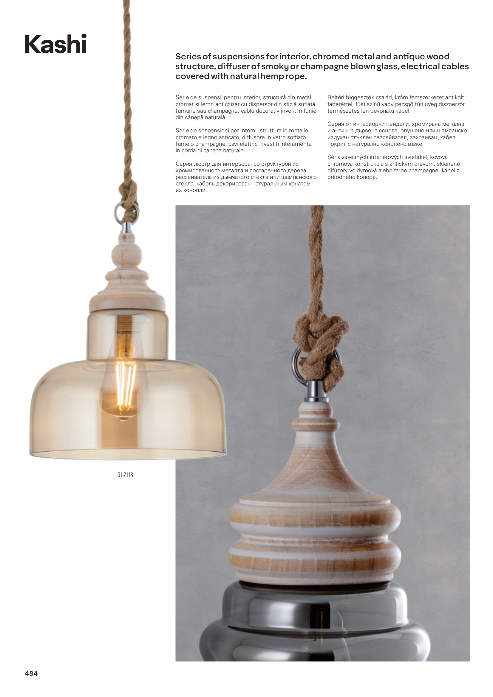 Осветителното тяло 01-2116 ще осигури комфорт и естетика във всяко помещение, в което се постави. Цялостната визия и дизайн на лампата и вложените в изработката й материали, като метал с хромово покритие, антично дърво, издухано стъкло шампанско, захранващ кабел покрит с натурално конопено въже, ще допринесат за един неповторим стил. Благодарение на дългогодишния опит, качествените материали и строгия контрол на качеството на изработка на дизайнерската линия Redo Indoor на производителя Redo (Румъния), 01-2116 е на високо европейско ниво.
