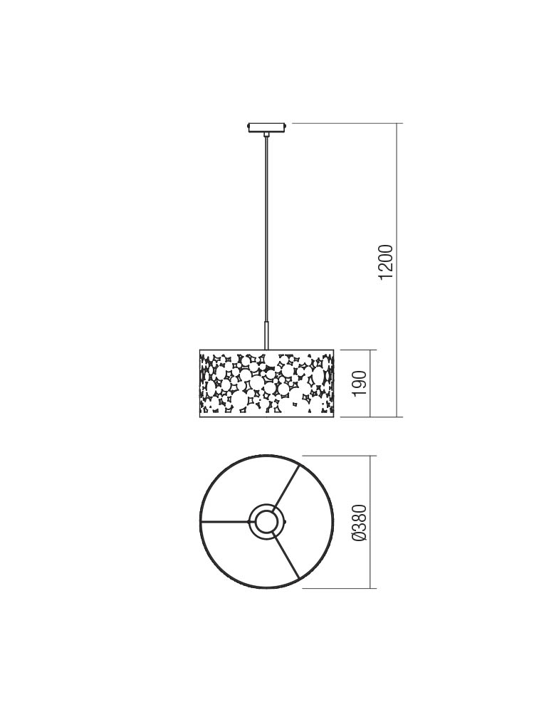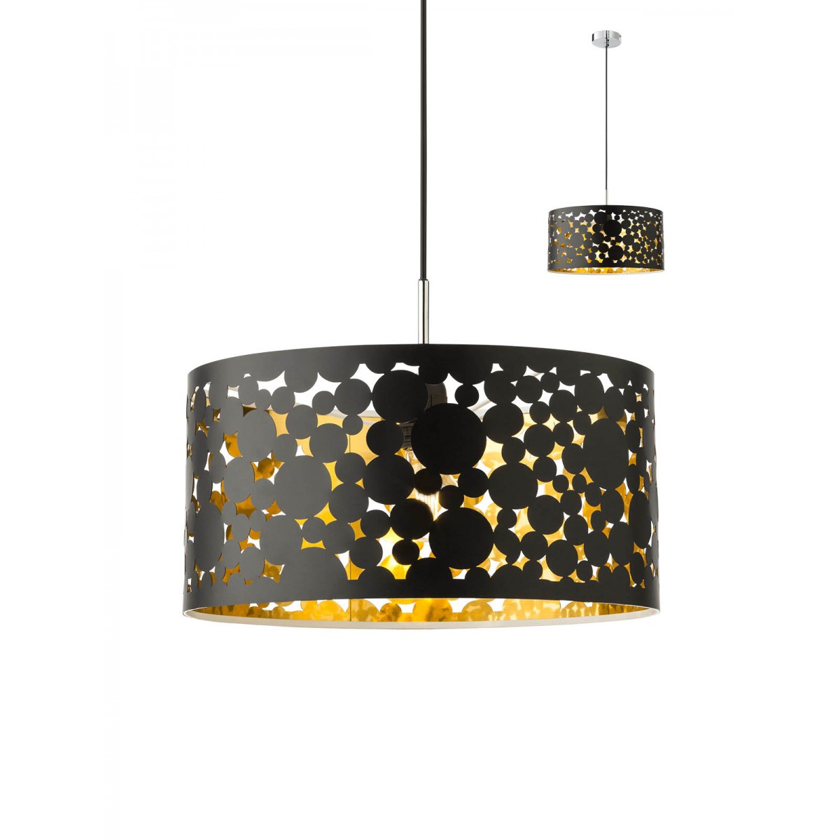хромиран метал, абажур от черен текстил поставен на PVC подложка в цвят злато, лазарно моделирана