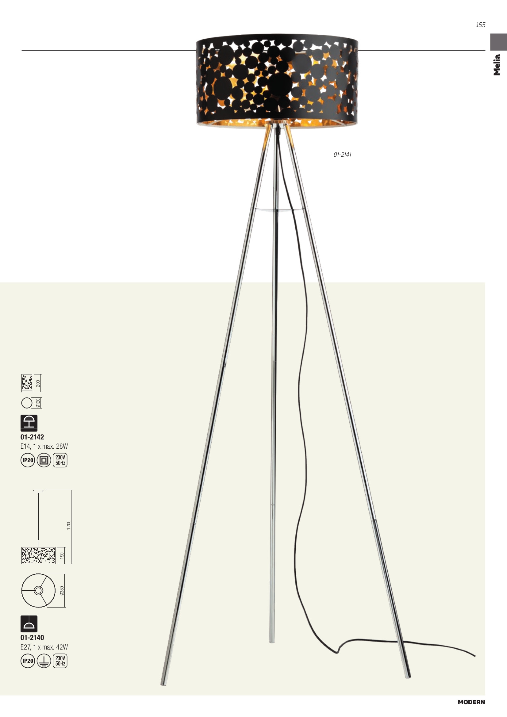 Стилът и естетиката на интериора ще се обогатят благодарение, както на цялостната визия, стил и дизайн на осветителното тяло, така и на вложените от производителя в изработката на 01-2142, качествени материали, като: хромиран метал, абажур от черен текстил поставен на PVC подложка в цвят злато, лазарно моделирана.