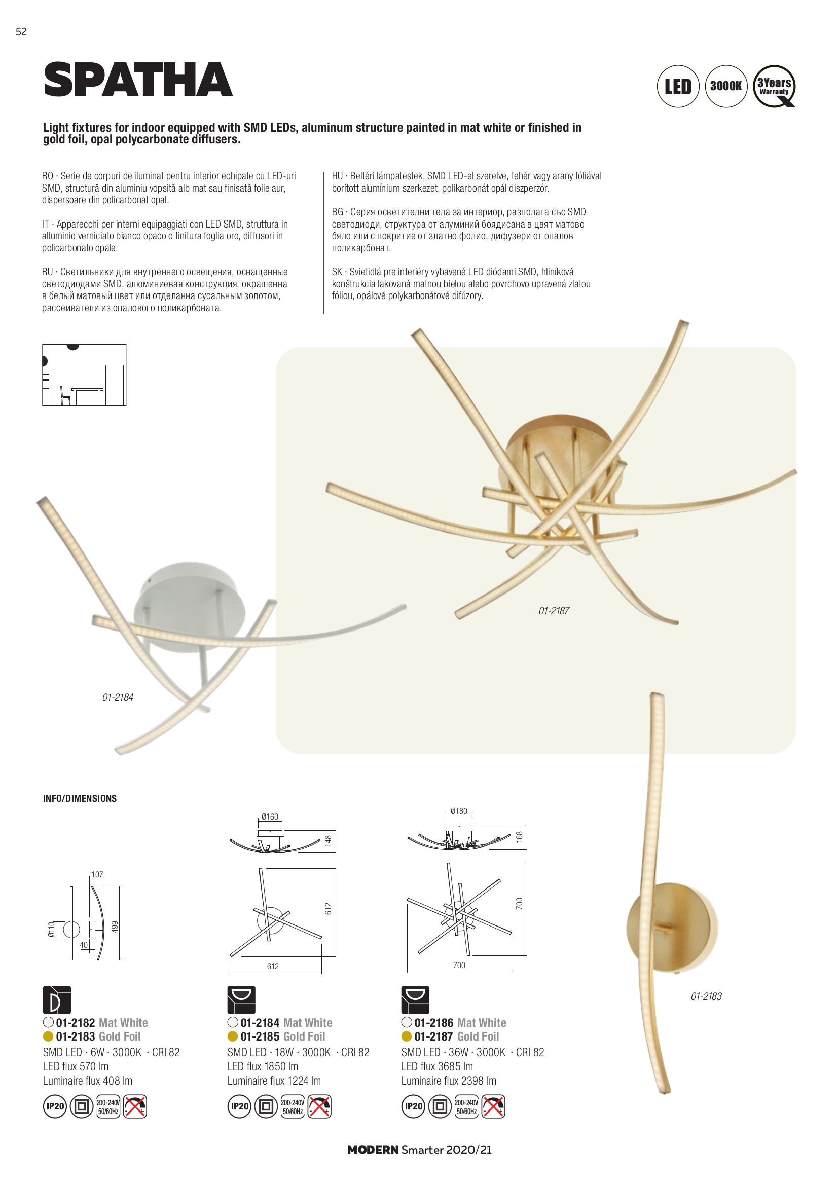 Лед плафон 01-2184 ще осигури комфорт и естетика във всяко помещение, в което се постави. Цялостната визия и дизайн на led лампата и вложените в изработката й материали, като алуминий в матово бял цвят, дифузери от опалово бял полимер, ще допринесат за един неповторим стил. Благодарение на дългогодишния опит в производството на лед осветление, качествените материали и строгия контрол на качеството на изработка на дизайнерската линия Redo Smarter на производителя Redo (Румъния), 01-2184 е на високо европейско ниво.
