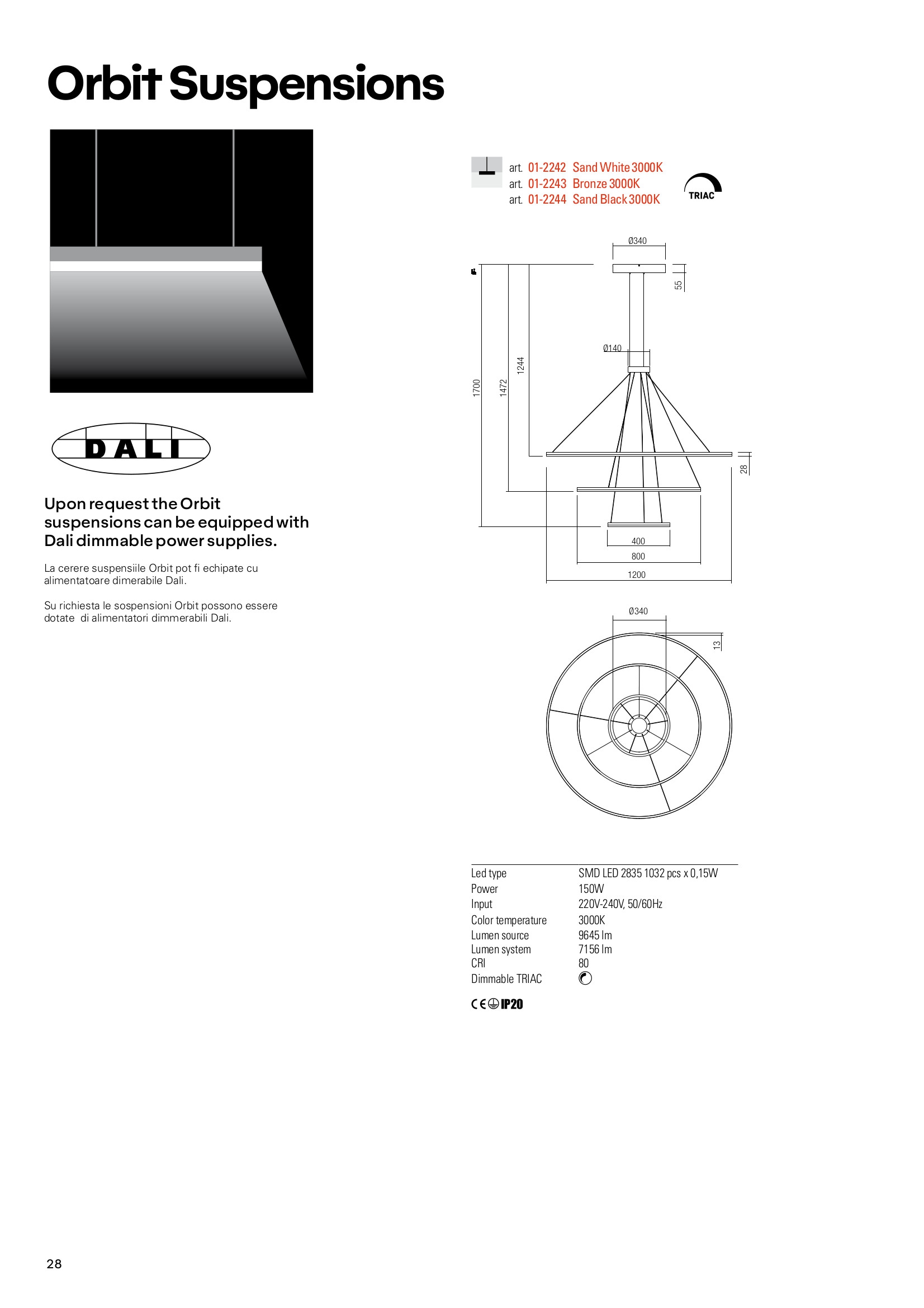 Лед полилей 01-2242-TRIAC ще осигури комфорт и естетика във всяко помещение, в което се постави. Цялостната визия и дизайн на led лампата и вложените в изработката й материали, като алуминий в матово бяло, метал в матово бяло, бял полимер, ще допринесат за един неповторим стил. Благодарение на дългогодишния опит в производството на лед осветление, качествените материали и строгия контрол на качеството на изработка на дизайнерската линия Redo Indoor на производителя Redo (Румъния), 01-2242-TRIAC е на високо европейско ниво.