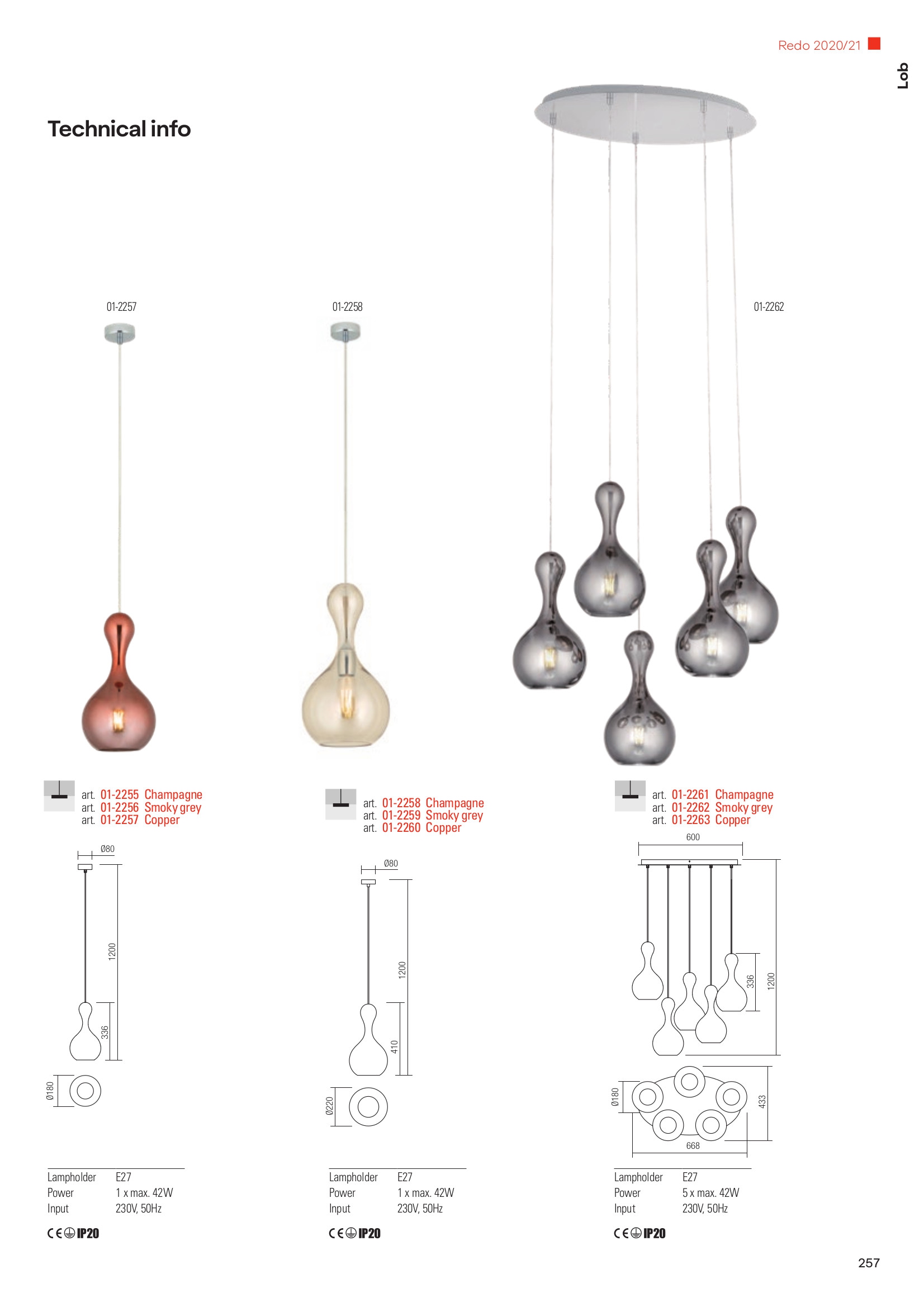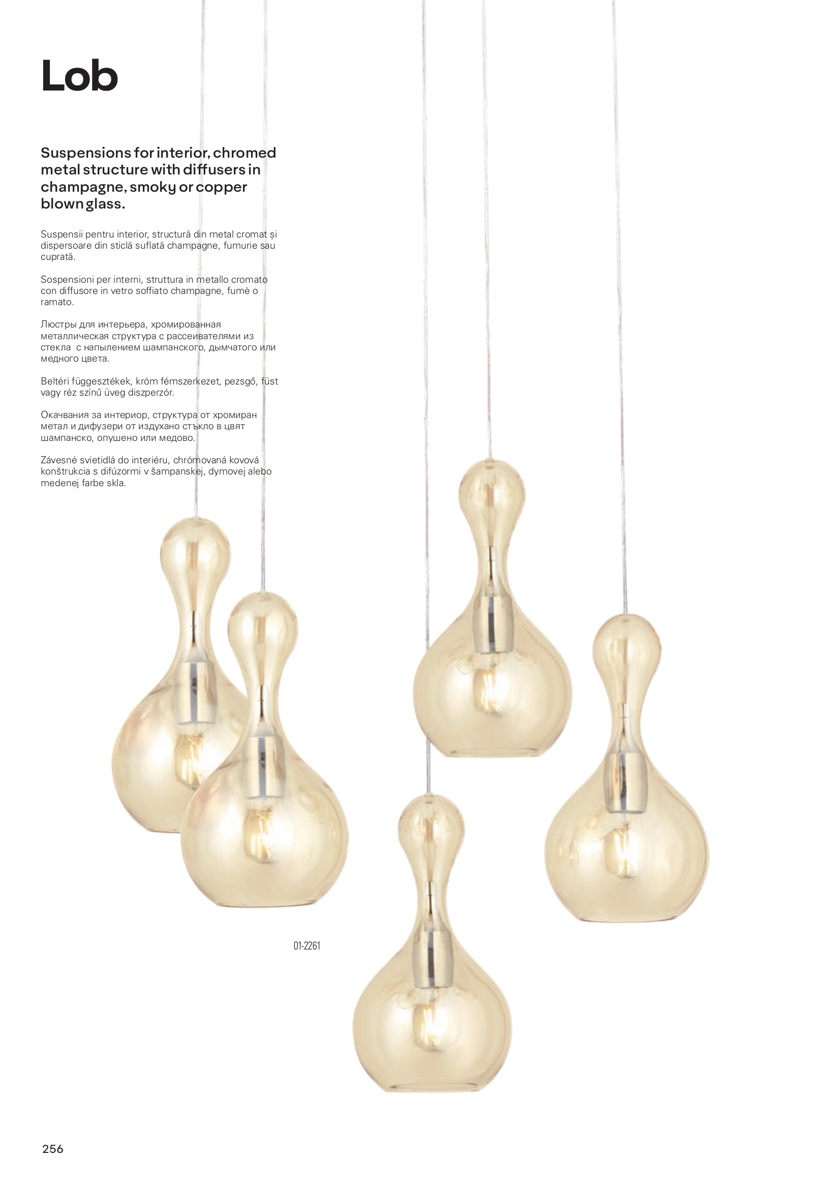 Осветителното тяло 01-2256 ще осигури комфорт и естетика във всяко помещение, в което се постави. Цялостната визия и дизайн на лампата и вложените в изработката й материали, като хромиран метал, дифузер от издухано стъкло в цвят опушено сиво, ще допринесат за един неповторим стил. Благодарение на дългогодишния опит, качествените материали и строгия контрол на качеството на изработка на дизайнерската линия Redo Indoor на производителя Redo (Румъния), 01-2256 е на високо европейско ниво.