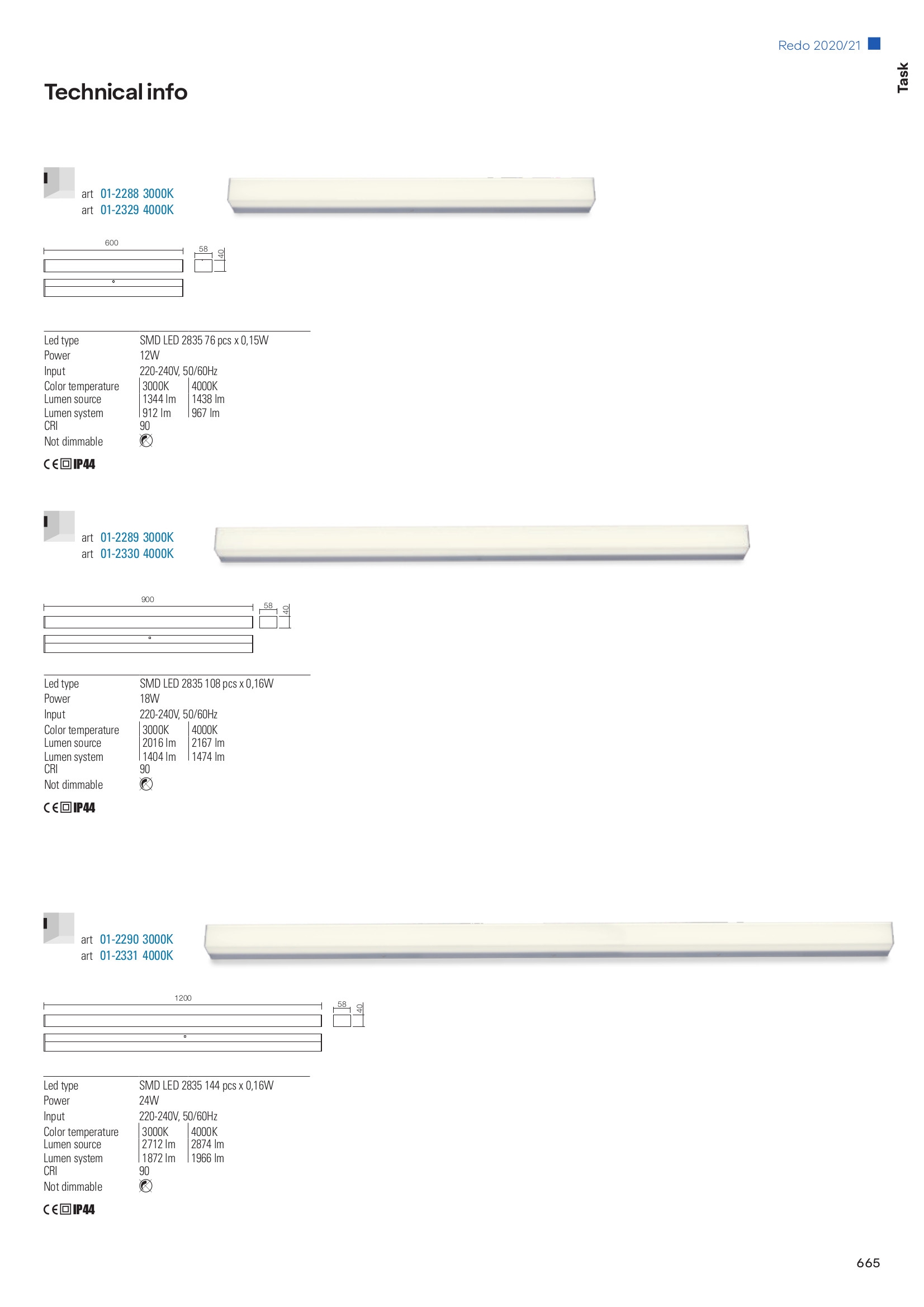 Ел. мощност 1 х 12 W Размери 60см x 5.8см x 4см Производител Redo, Румъния