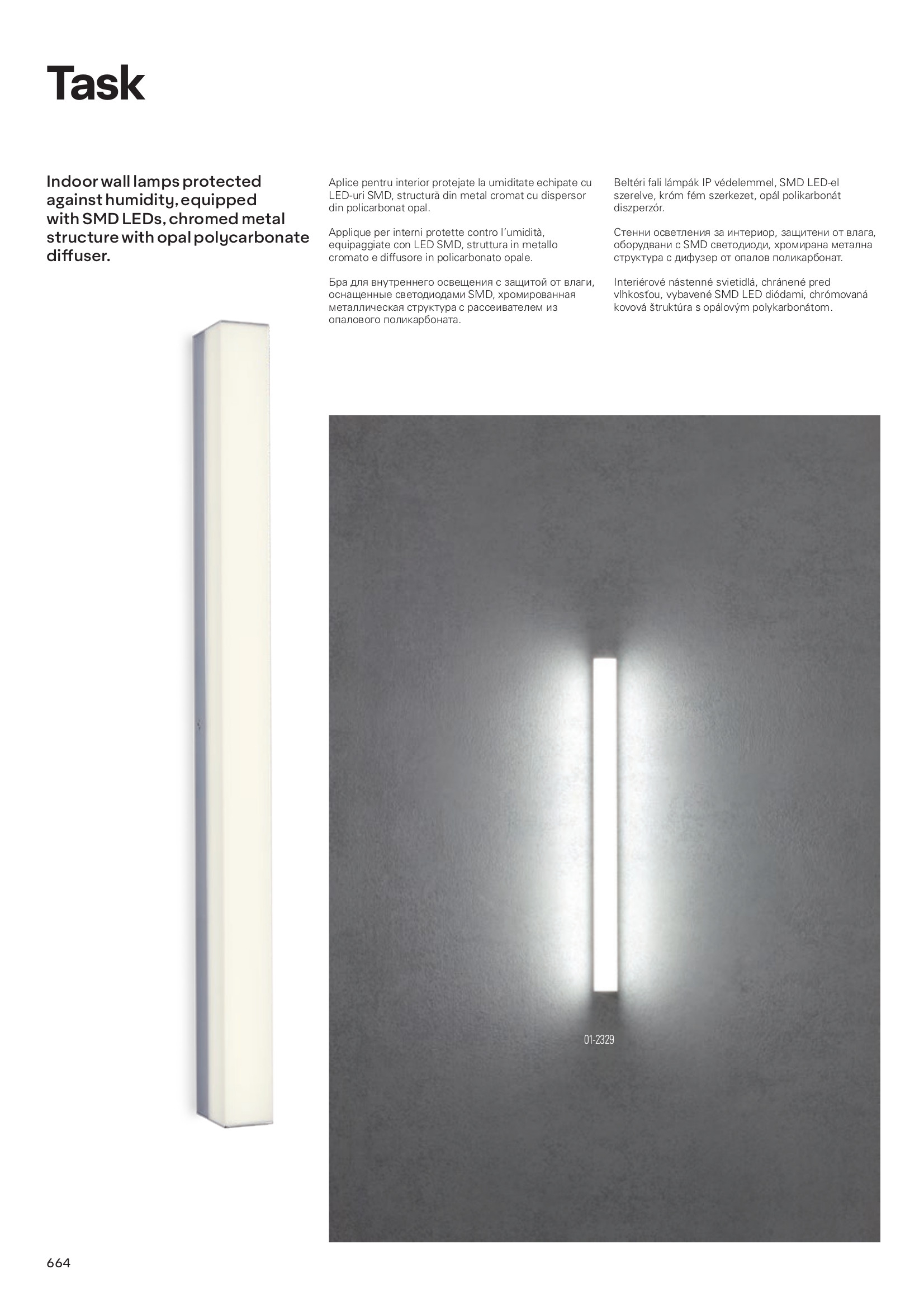 Осветителното тяло 01-2289 ще осигури комфорт и естетика във всяко помещение, в което се постави. Цялостната визия и дизайн на лампата и вложените в изработката й материали, като хромиран метал, полимер в цвят опалово бяло, ще допринесат за един неповторим стил. Благодарение на дългогодишния опит, качествените материали и строгия контрол на качеството на изработка на дизайнерската линия Redo Indoor на производителя Redo (Румъния), 01-2289 е на високо европейско ниво.