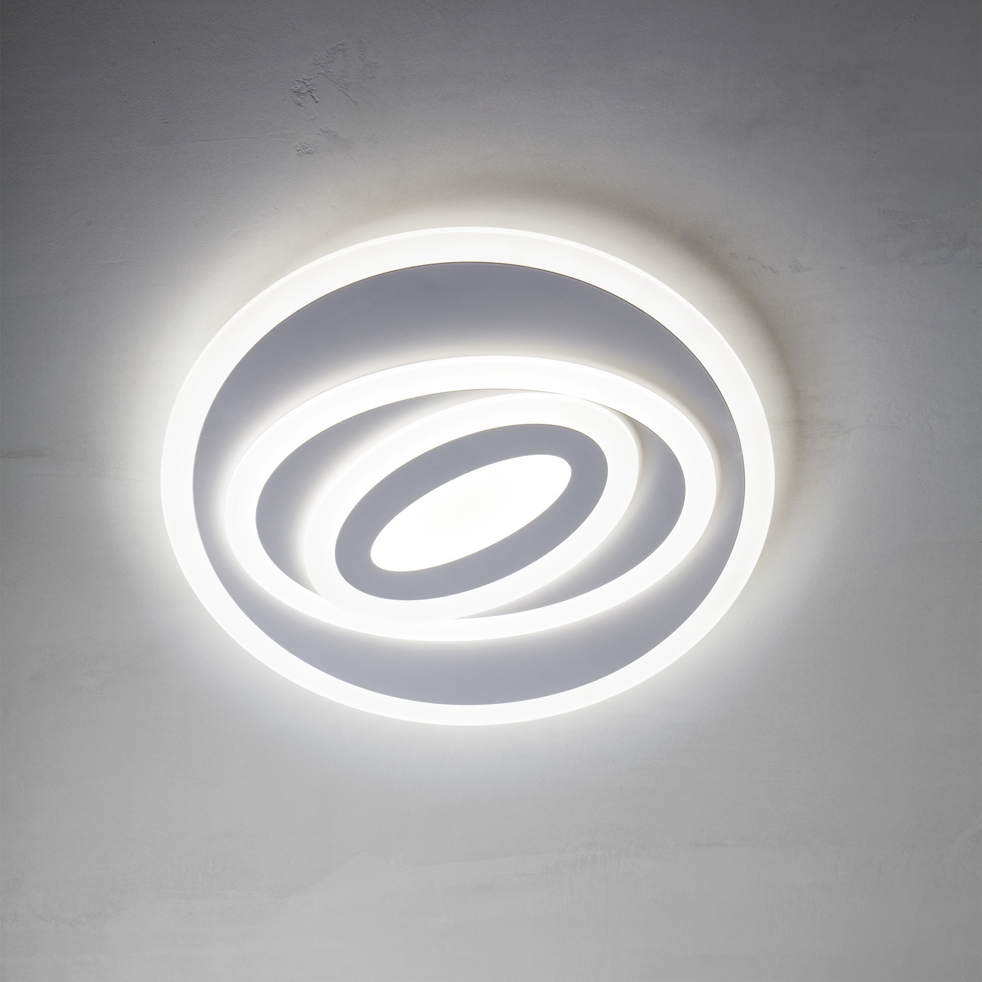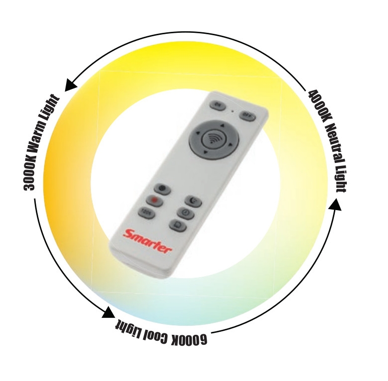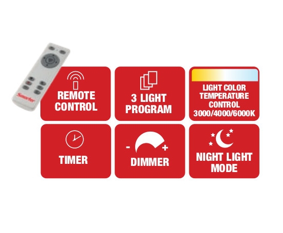 метал в матово бяло, сатенирани акрилни разсейватели, дистанционно управление (включени 2 AAA батерии), регулиране на интензитета на светлината, промяна на цветовата температура, таймер, режим нощна светлина