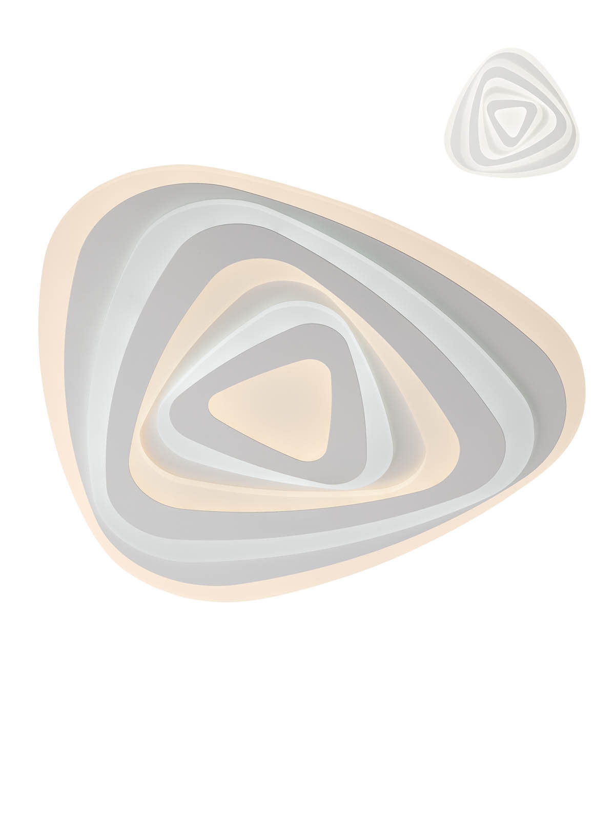 метал в матово бяло, сатенирани акрилни разсейватели, дистанционно управление (включени 2 AAA батерии), регулиране на интензитета на светлината, промяна на цветовата температура, таймер, режим нощна светлина