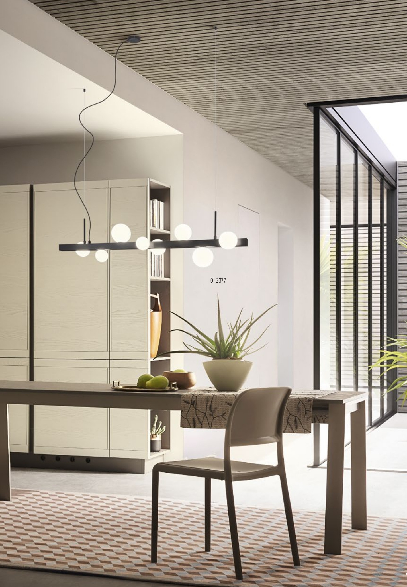 Осветителното тяло 01-2377 ще осигури комфорт и естетика във всяко помещение, в което се постави. Цялостната визия и дизайн на лампата и вложените в изработката й материали, като анодизиран, надраскан алуминий в черен цвят, дифузер от опалово бяло духано стъкло, ще допринесат за един неповторим стил. Благодарение на дългогодишния опит, качествените материали и строгия контрол на качеството на изработка на дизайнерската линия Redo Indoor на производителя Redo (Румъния), 01-2377 е на високо европейско ниво.