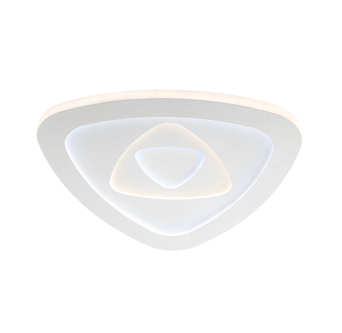 метал в матово бяло, сатенирани акрилни разсейватели, дистанционно управление (включени 2 AAA батерии), регулиране на интензитета на светлината, промяна на цветовата температура, таймер, режим нощна светлина