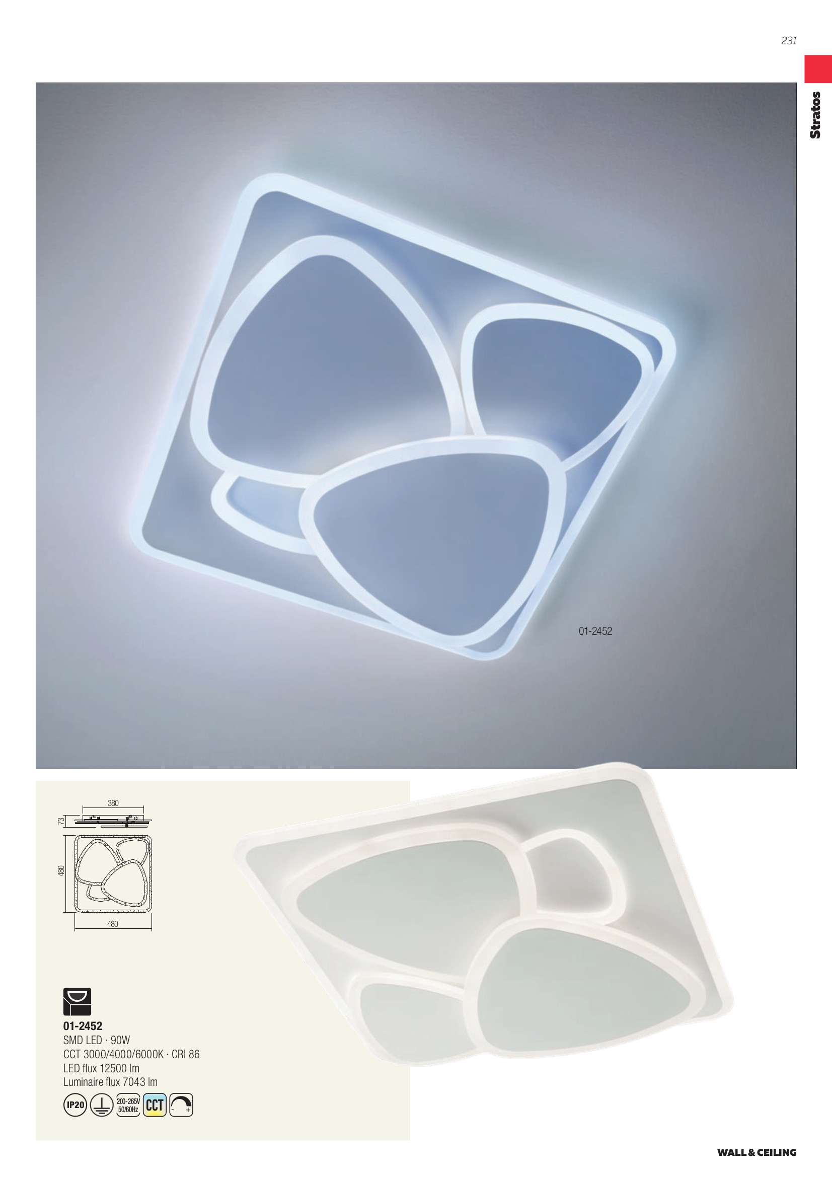 Осветителното тяло 01-2452 ще осигури комфорт и естетика във всяко помещение, в което се постави. Цялостната визия и дизайн на лампата и вложените в изработката й материали, като метал в матово бяло, сатенирани акрилни разсейватели, дистанционно управление (включени 2 AAA батерии), регулиране на интензитета на светлината, промяна на цветовата температура, таймер, режим нощна светлина, ще допринесат за един неповторим стил. Благодарение на дългогодишния опит, качествените материали и строгия контрол на качеството на изработка на дизайнерската линия Redo Smarter на производителя Redo (Румъния), 01-2452 е на високо европейско ниво.