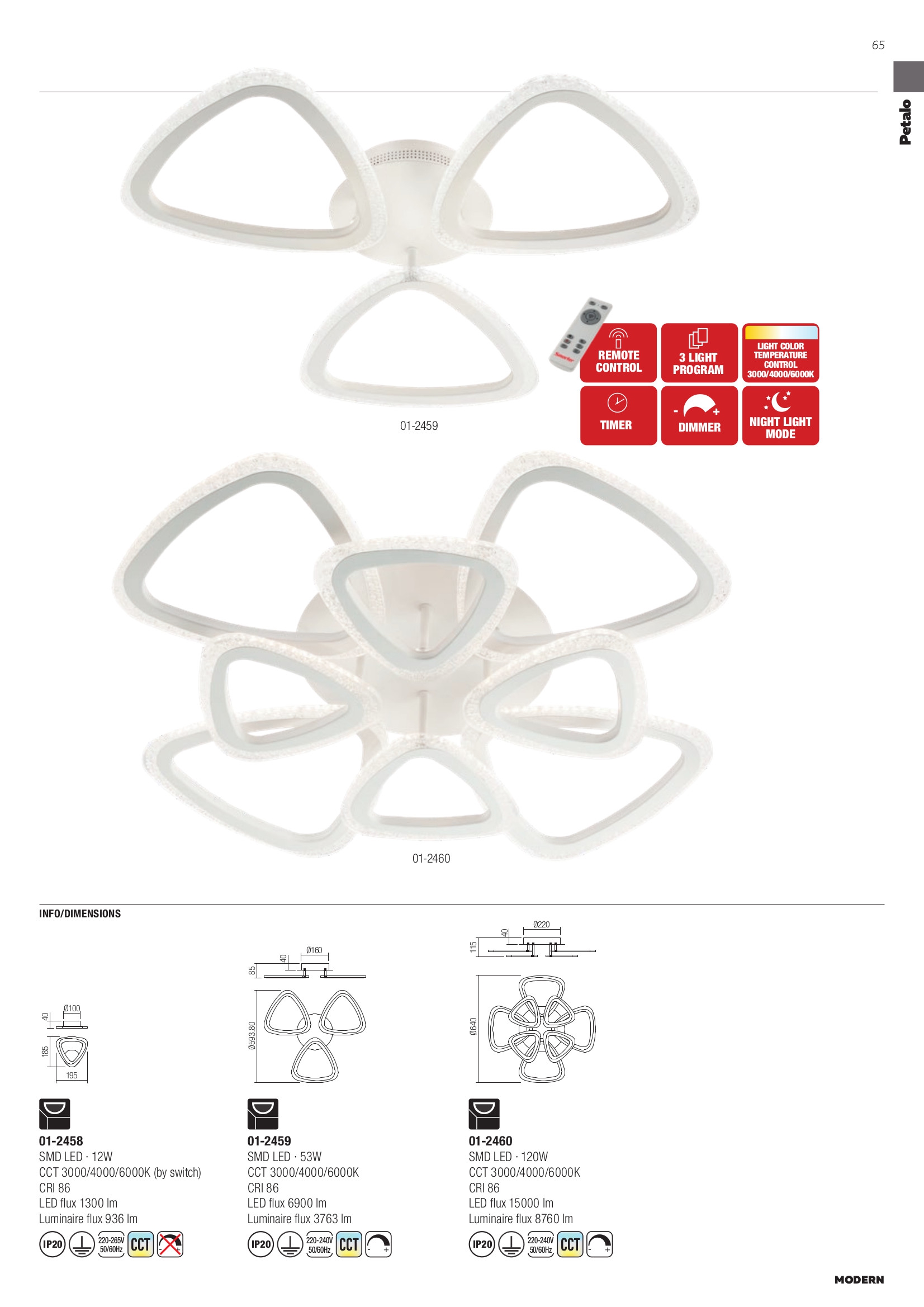 Осветителното тяло 01-2460 ще осигури комфорт и естетика във всяко помещение, в което се постави. Цялостната визия и дизайн на лампата и вложените в изработката й материали, като метал в цвят бял мат, дифузер от прозрачен полимер с ефект мехурчета, дистанционно регулиращо силата и цветната температура на светлината с таймер и нощна светлина, ще допринесат за един неповторим стил. Благодарение на дългогодишния опит, качествените материали и строгия контрол на качеството на изработка на дизайнерската линия Redo Smarter на производителя Redo (Румъния), 01-2460 е на високо европейско ниво.