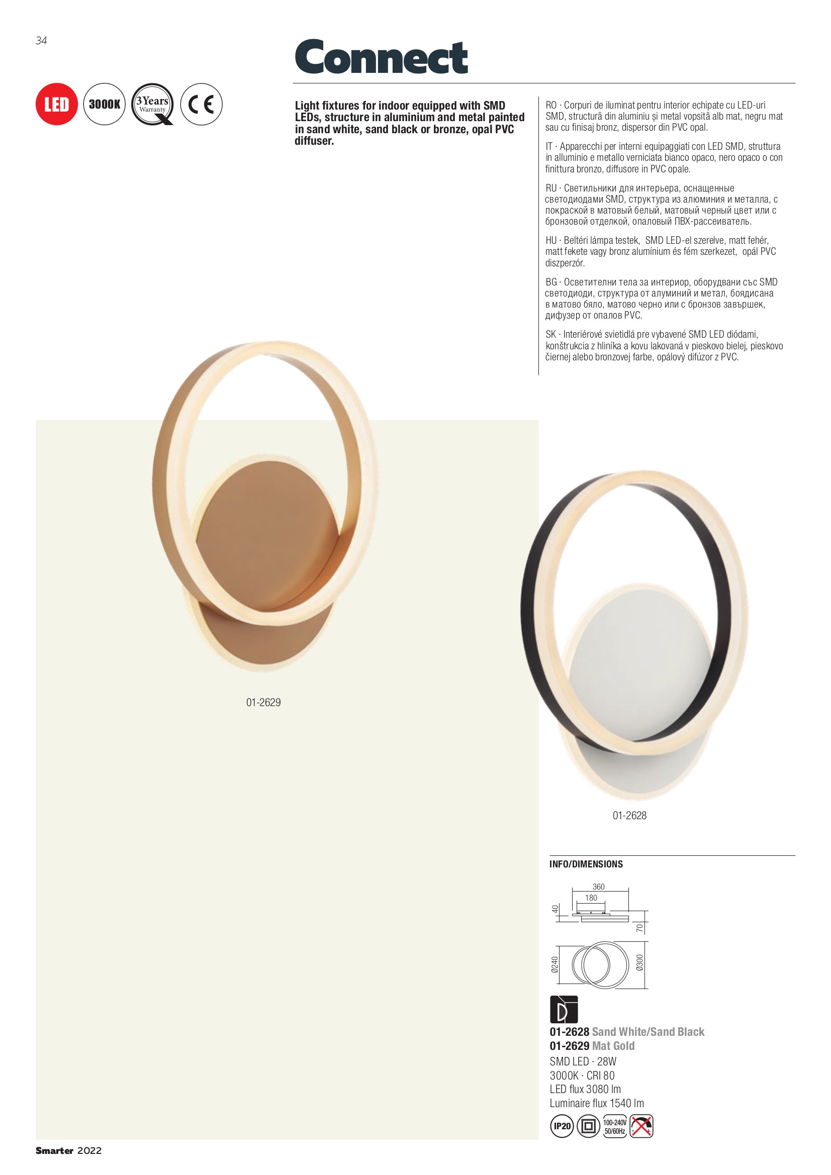Осветителното тяло 01-2629 ще осигури комфорт и естетика във всяко помещение, в което се постави. Цялостната визия и дизайн на лампата и вложените в изработката й материали, като алуминий и метал в цвят златен мат, дифузер от опалово бял полимер, ще допринесат за един неповторим стил. Благодарение на дългогодишния опит, качествените материали и строгия контрол на качеството на изработка на дизайнерската линия Redo Smarter на производителя Redo (Румъния), 01-2629 е на високо европейско ниво.