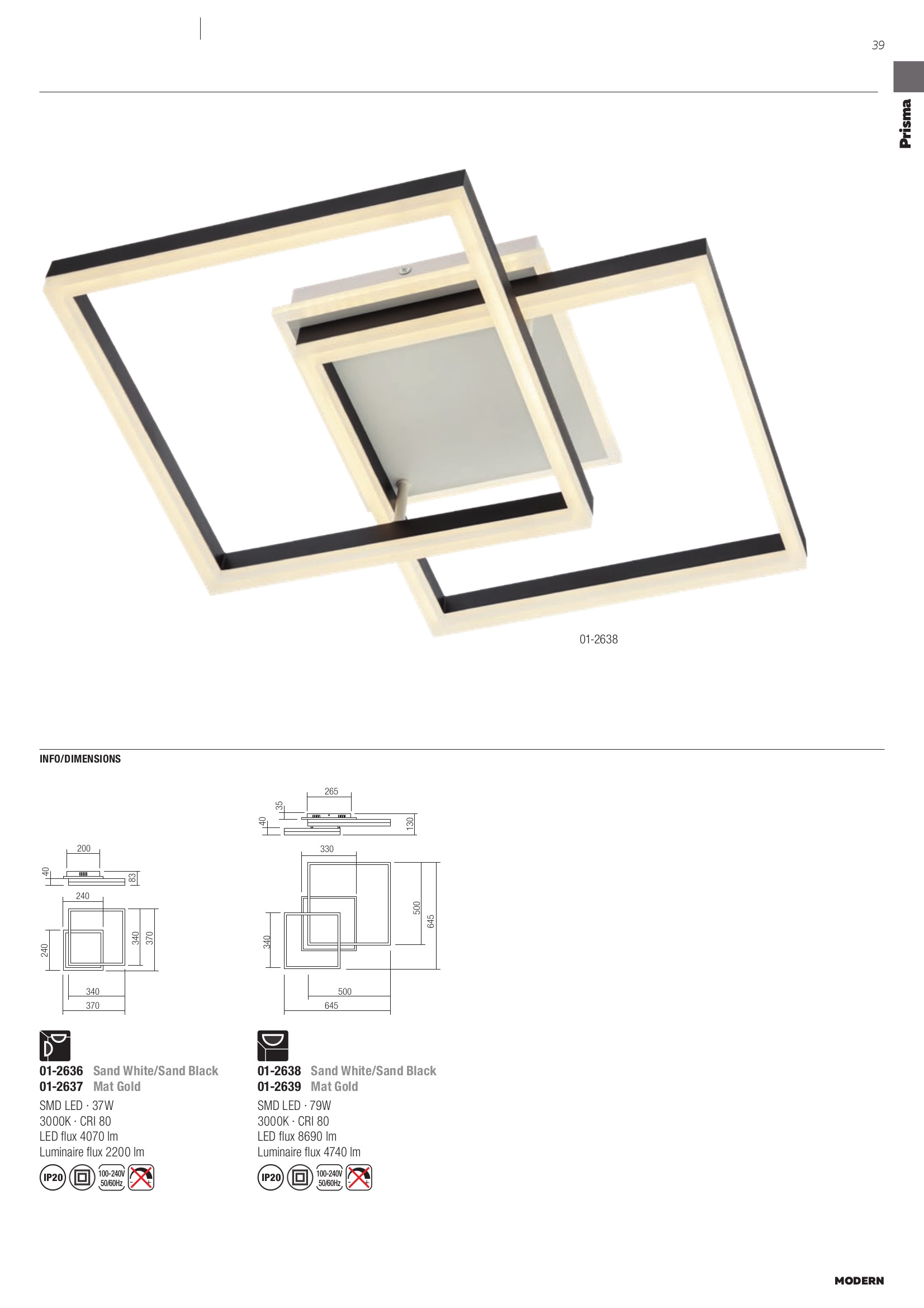 Осветителното тяло 01-2638 ще осигури комфорт и естетика във всяко помещение, в което се постави. Цялостната визия и дизайн на лампата и вложените в изработката й материали, като алуминий в пясъчно бяло, полимер в пясъчно черно, дифузер от опалово бял полимер, ще допринесат за един неповторим стил. Благодарение на дългогодишния опит, качествените материали и строгия контрол на качеството на изработка на дизайнерската линия Redo Smarter на производителя Redo (Румъния), 01-2638 е на високо европейско ниво.