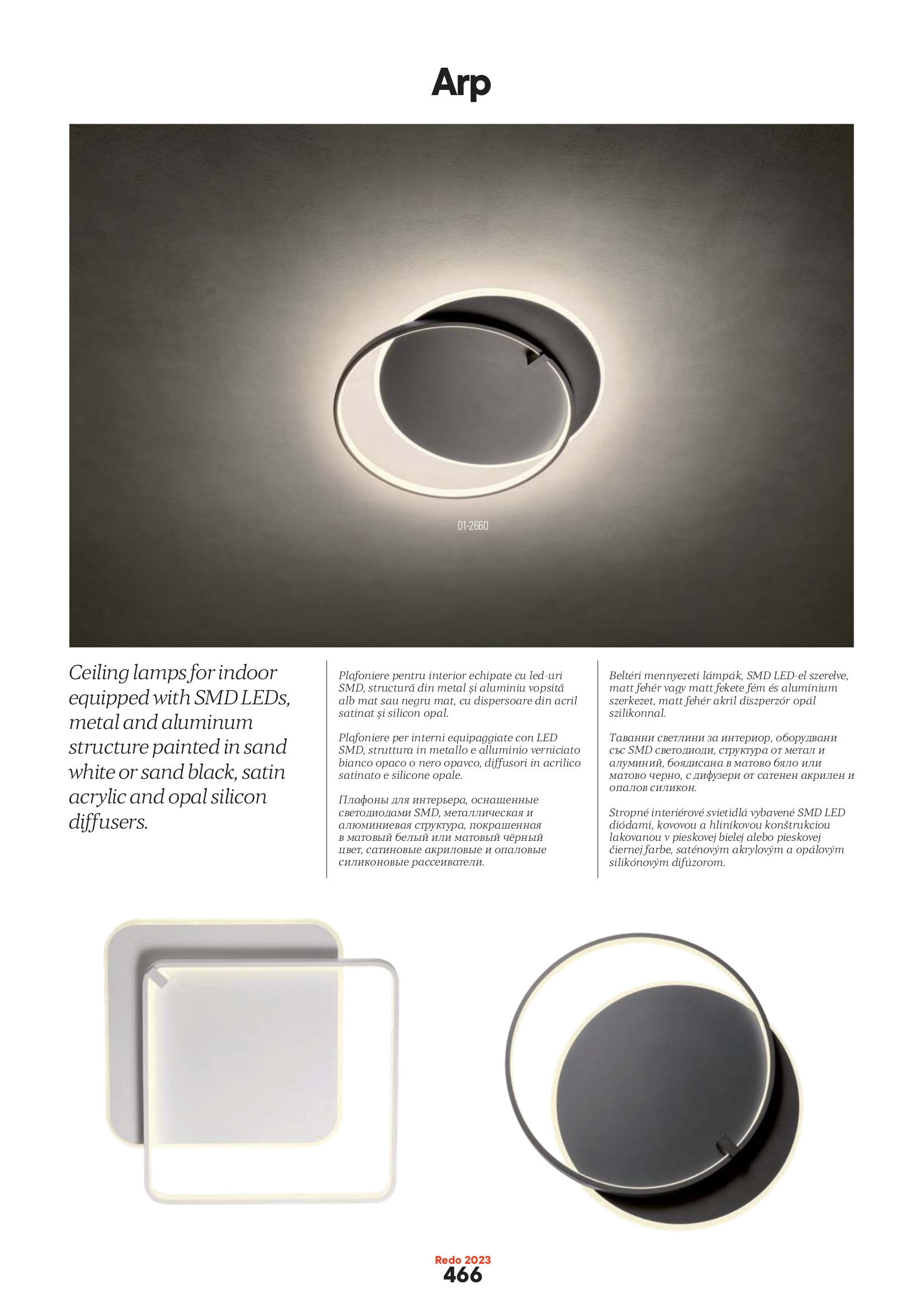 Осветителното тяло 01-2659 ще осигури комфорт и естетика във всяко помещение, в което се постави. Цялостната визия и дизайн на лампата и вложените в изработката й материали, като метал и алуминий матово бял цвят, дифузери от сатениран акрил и опалово бял силикон, ще допринесат за един неповторим стил. Благодарение на дългогодишния опит, качествените материали и строгия контрол на качеството на изработка на дизайнерската линия Redo Indoor на производителя Redo (Румъния), 01-2659 е на високо европейско ниво.