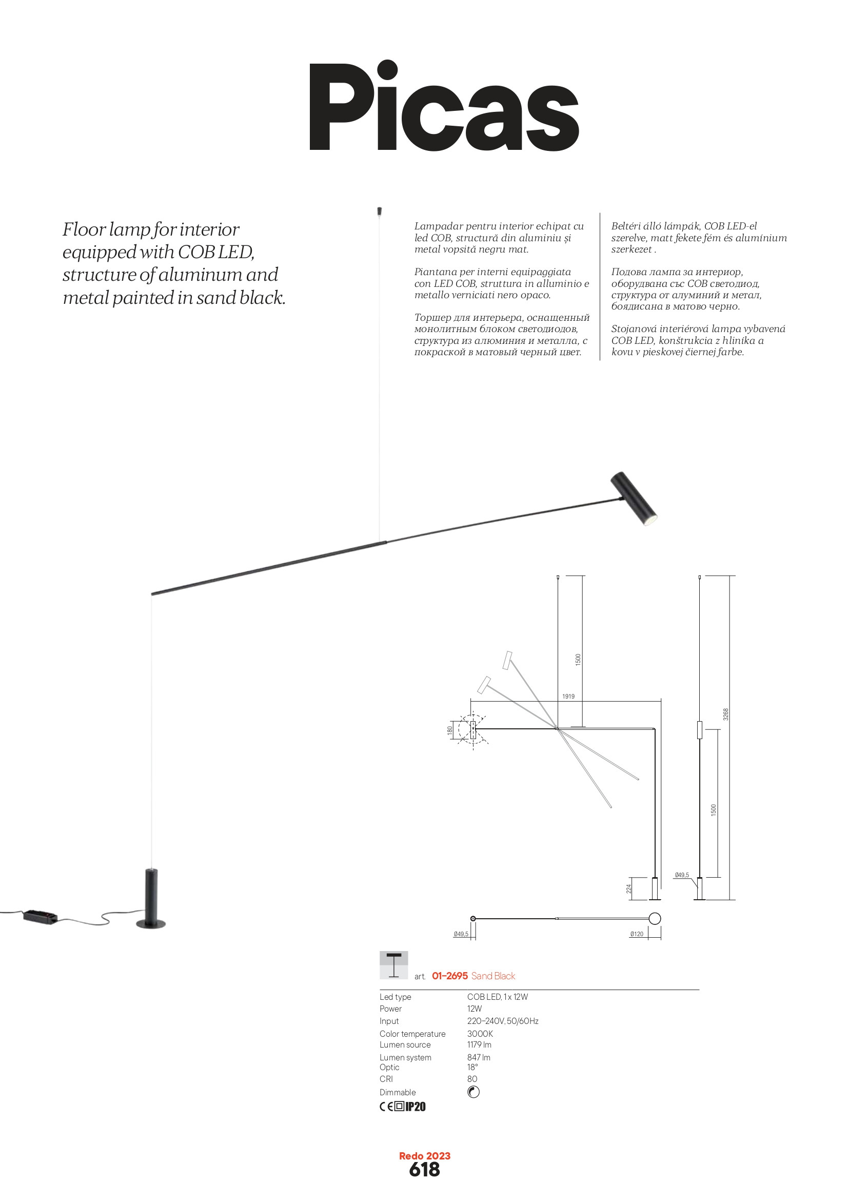 Лед лампион / правостояща лампа 01-2695 ще осигури комфорт и естетика във всяко помещение, в което се постави. Цялостната визия и дизайн на led лампата и вложените в изработката й материали, като алуминий и метал в матово черен цвят, ще допринесат за един неповторим стил. Благодарение на дългогодишния опит в производството на лед осветление, качествените материали и строгия контрол на качеството на изработка на дизайнерската линия Redo Indoor на производителя Redo (Румъния), 01-2695 е на високо европейско ниво.