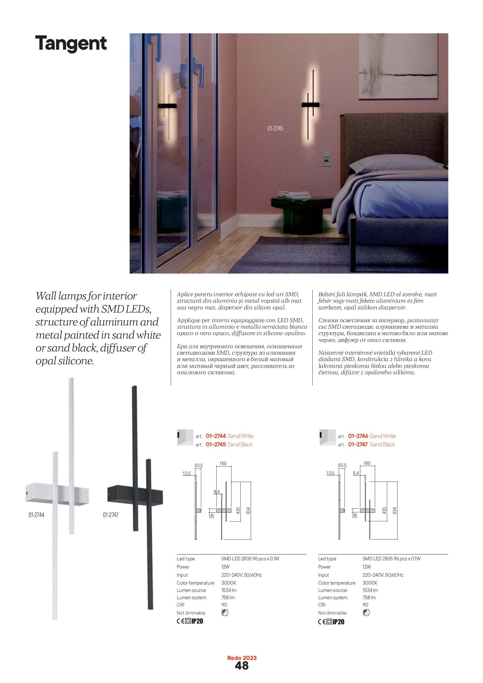 Осветителното тяло 01-2744 ще осигури комфорт и естетика във всяко помещение, в което се постави. Цялостната визия и дизайн на лампата и вложените в изработката й материали, като метал в пясъчно бяло, дифузер от опалово бял силикон, ще допринесат за един неповторим стил. Благодарение на дългогодишния опит, качествените материали и строгия контрол на качеството на изработка на дизайнерската линия Redo Indoor на производителя Redo (Румъния), 01-2744 е на високо европейско ниво.