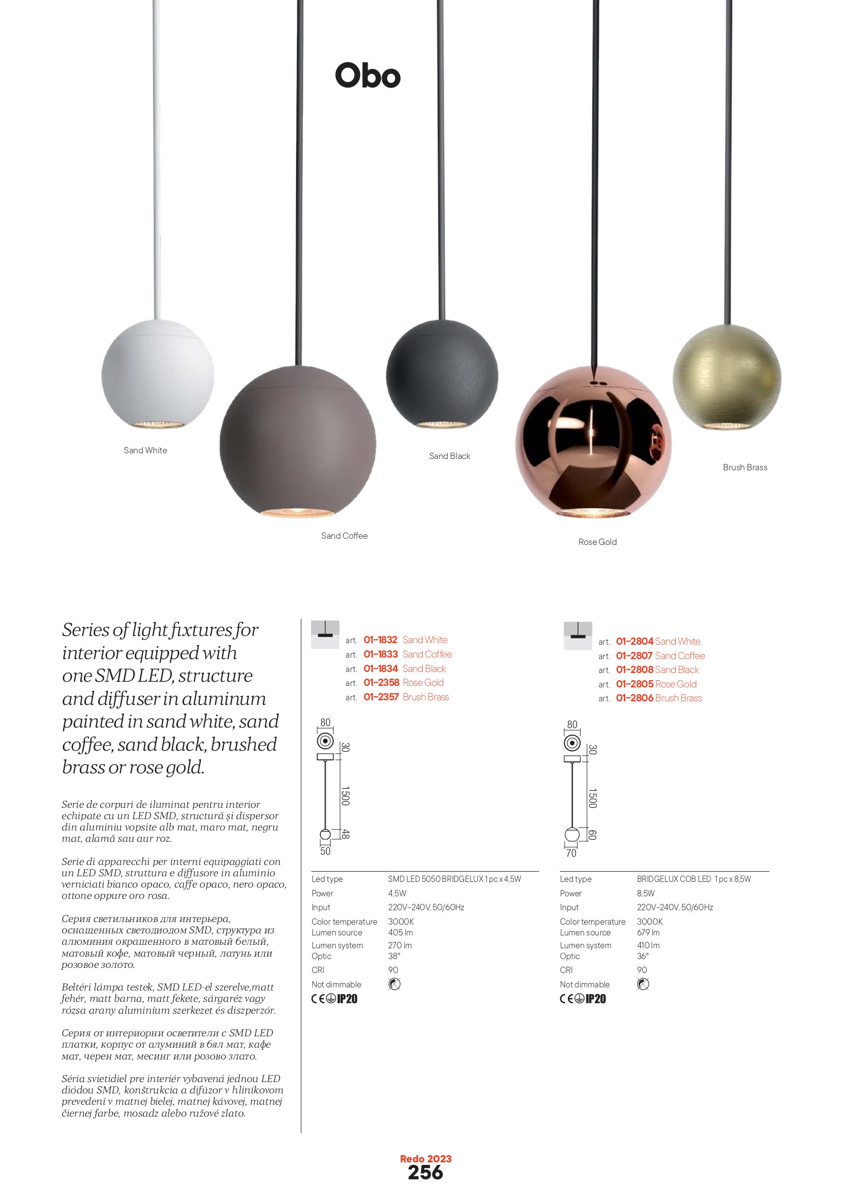 Лед пендел 01-2806 ще осигури комфорт и естетика във всяко помещение, в което се постави. Цялостната визия и дизайн на led лампата и вложените в изработката й материали, като алуминий в цвят надраскан месинг, ще допринесат за един неповторим стил. Благодарение на дългогодишния опит в производството на лед осветление, качествените материали и строгия контрол на качеството на изработка на дизайнерската линия Redo Indoor на производителя Redo (Румъния), 01-2806 е на високо европейско ниво.