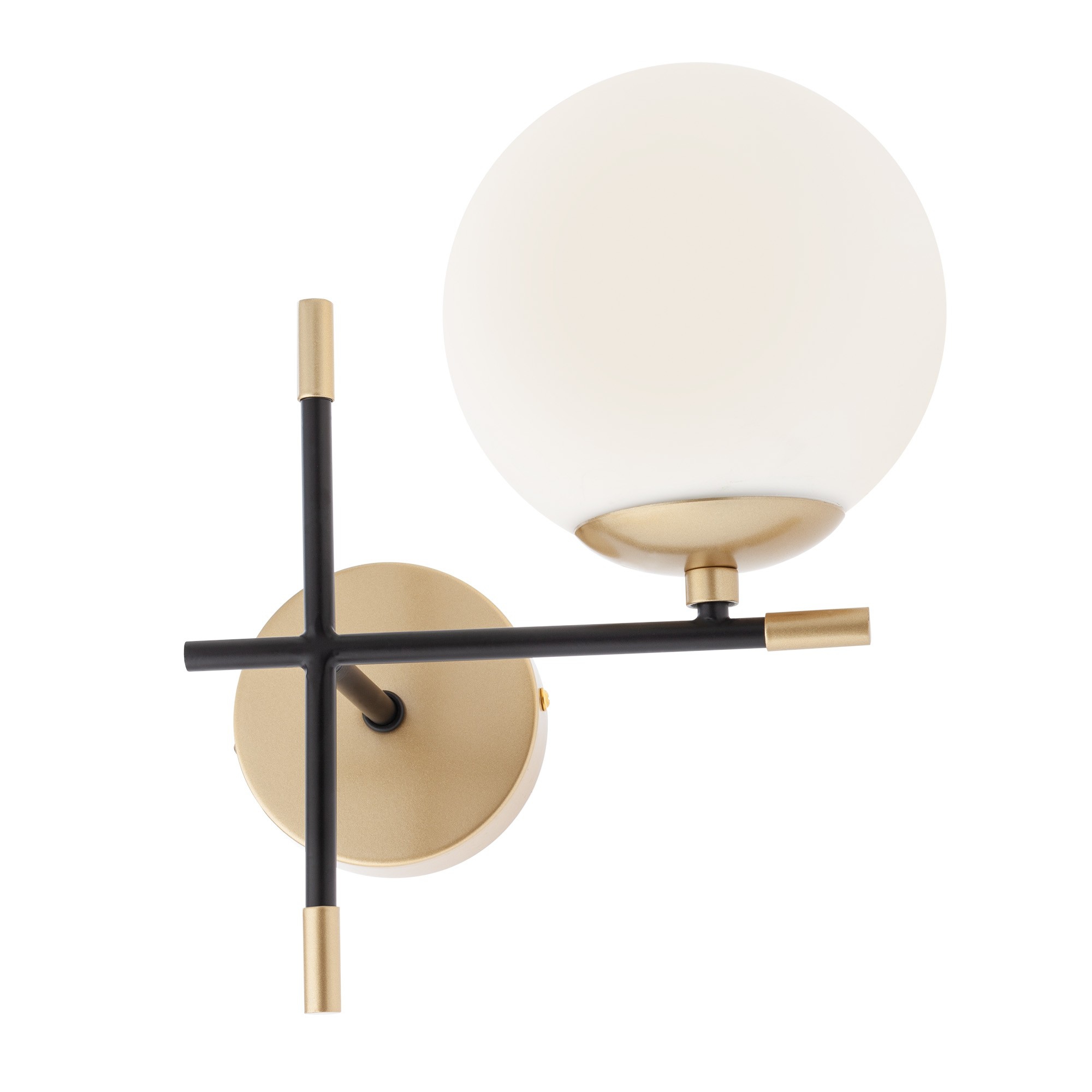 метал в цвят матово злато, абажур от издухано стъкло в млечно бяло